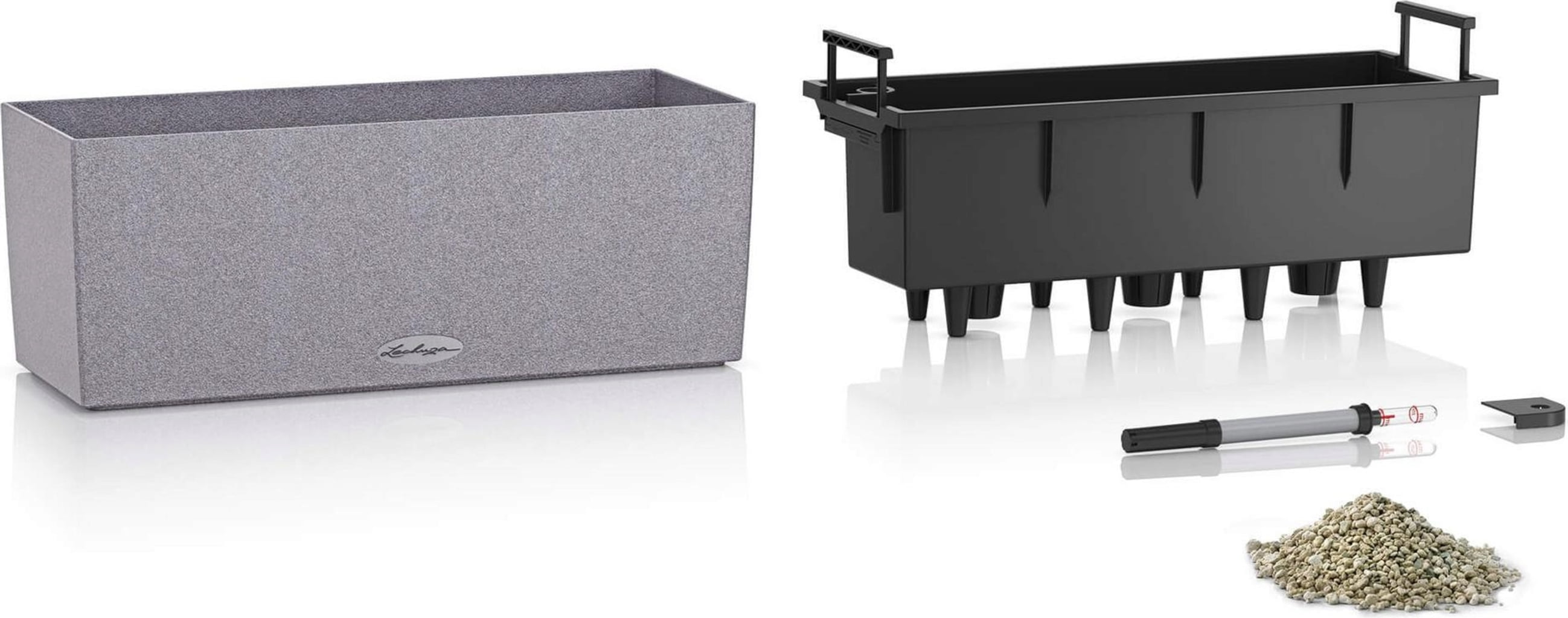 A purisztikus Lechuza "Balconera Stone" virágtartó vonzó felületi szerkezetével a középpontba helyezi a virágokat. Praktikus tulajdonságaival nagyon lenyűgöző, amelyek minden kertész szívét megdobogtatják. Akár szabadon, akár az erkélykorláthoz rögzítve a külön megvásárolható tartókkal - az UV-álló polipropilénből készült növényláda mindig egy stílusos szemet gyönyörködtető.