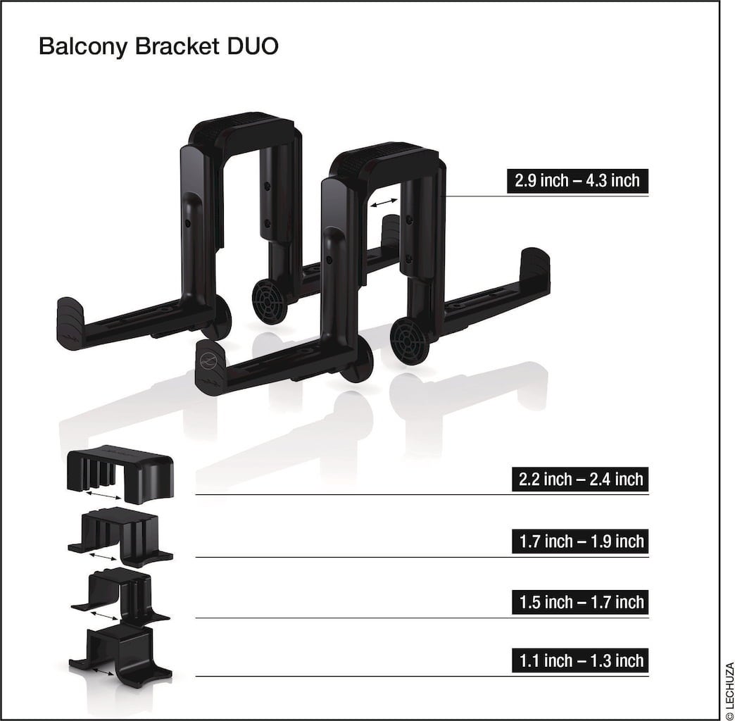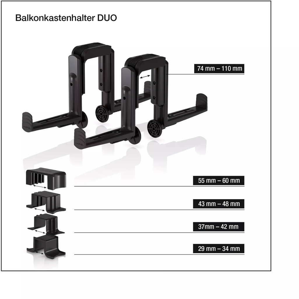 Szállítási terjedelem: 2 db DUO balkonláda-tartó (1 pár) adapterkészlettel (4 db)