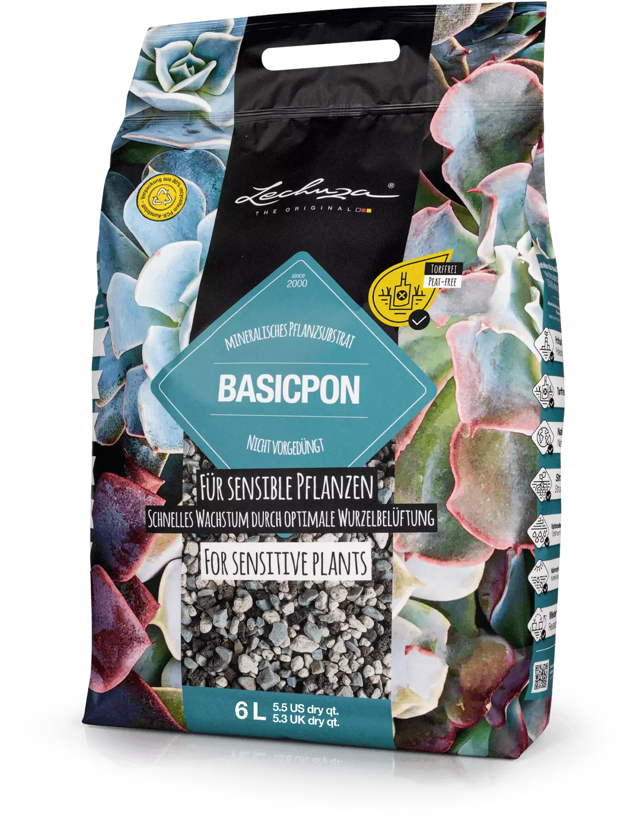 A Lechuza BASICPON egyesíti a klasszikus PON bevált tulajdonságait, azonban teljesen trágyamentes. Ezért különösen alkalmas érzékeny növények számára, valamint dugványok és hajtások neveléséhez.