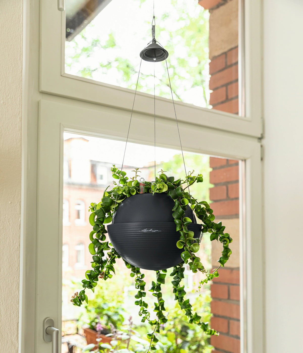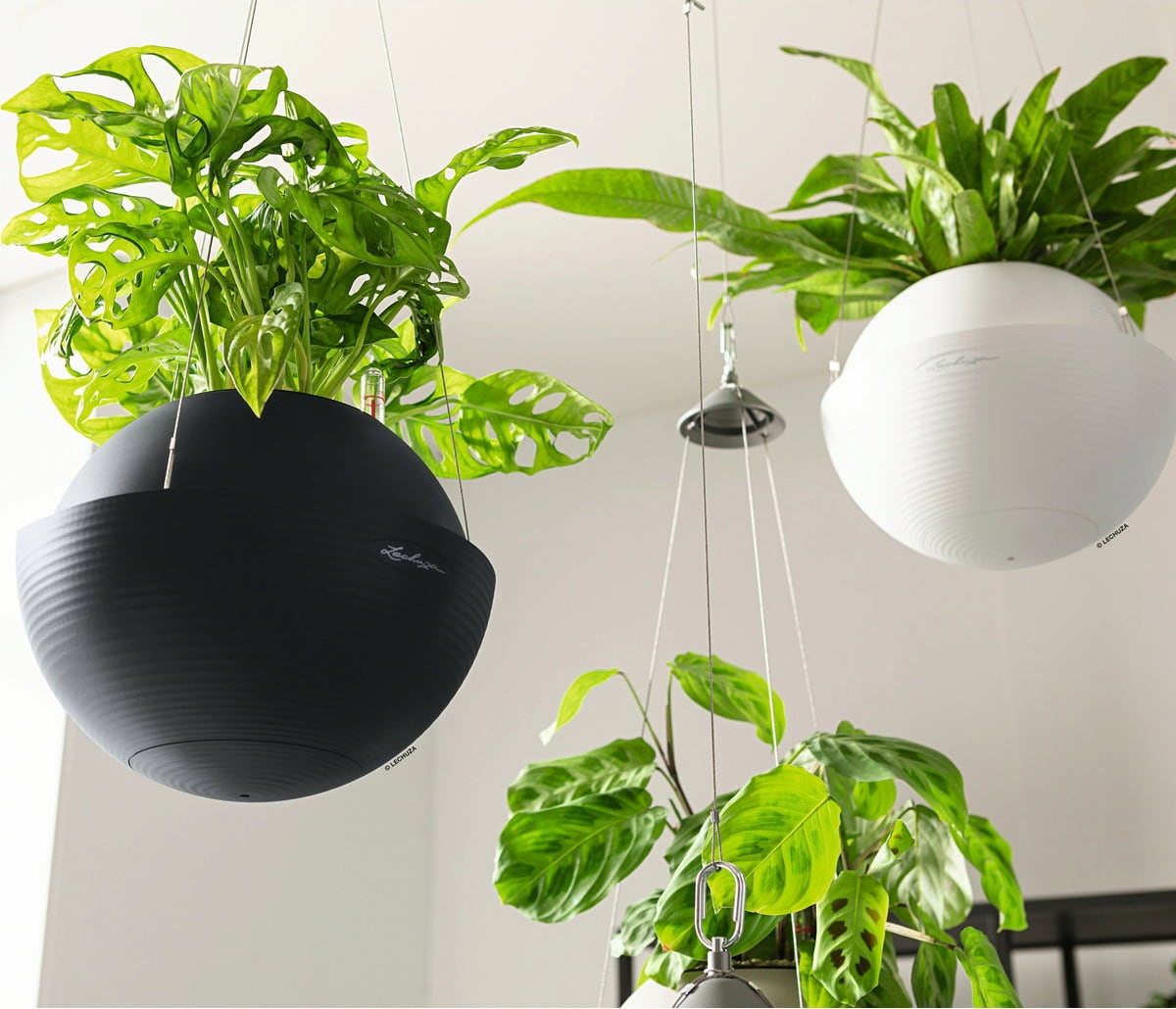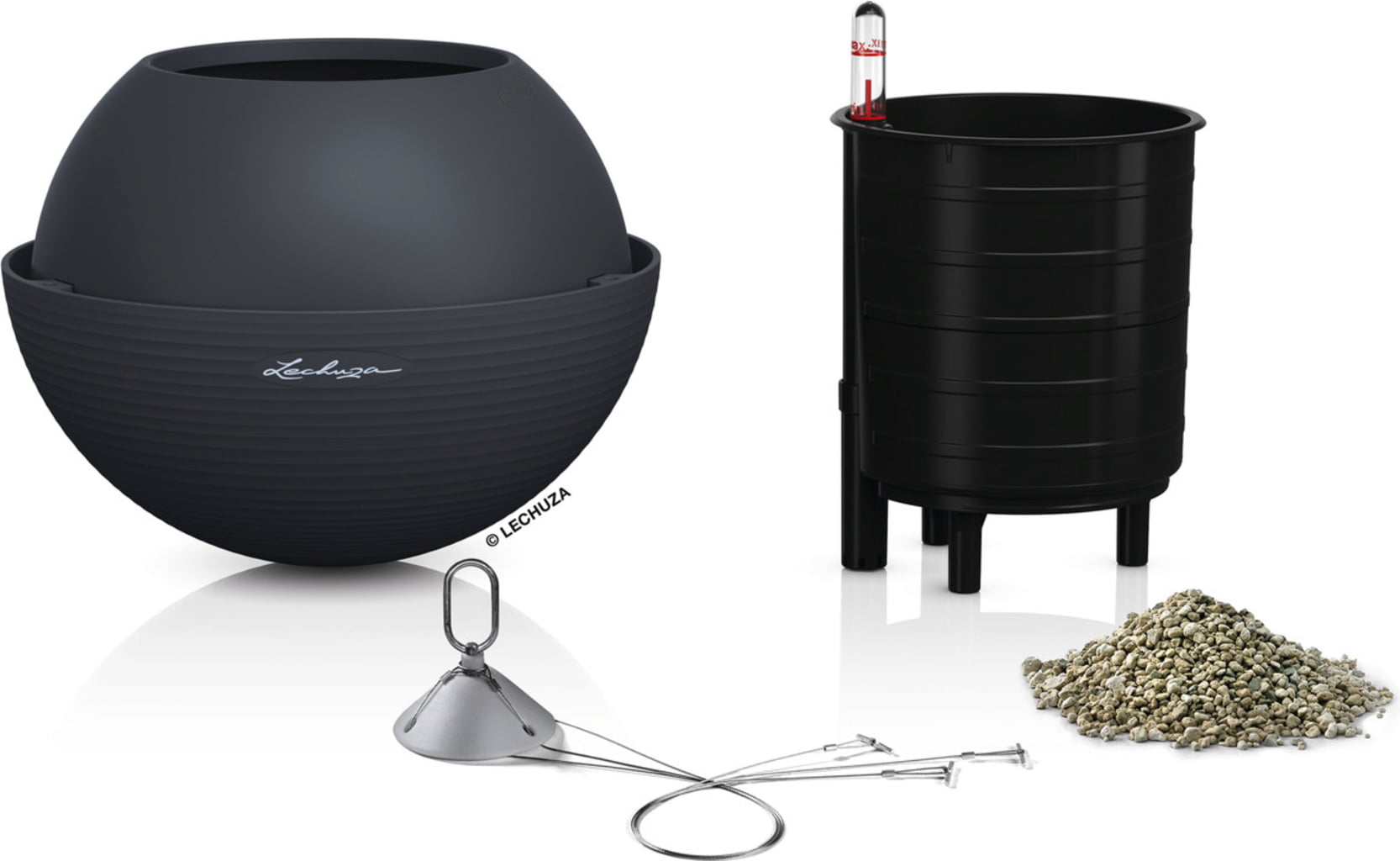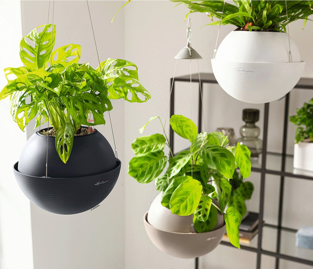 Szállítási csomag: "All-in-One" szett, amely egy virágtartóból, kivehető betétből, Lechuza öntözőszettből és nemesacél felfüggesztésből áll