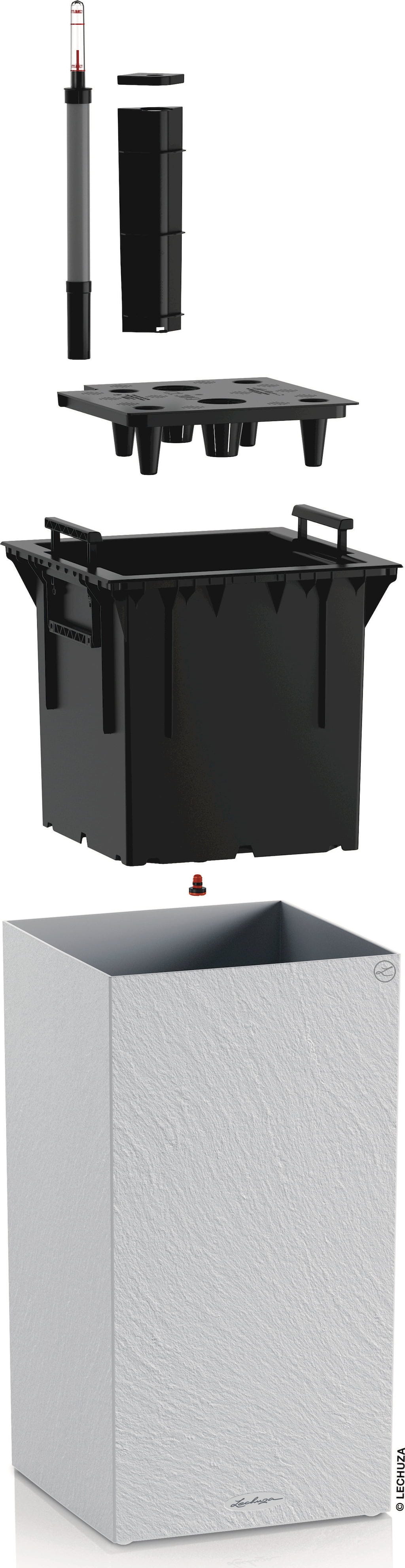- Az integrált eredeti LECHUZA öntözőrendszer optimálisan ellátja a növényeket vízzel.