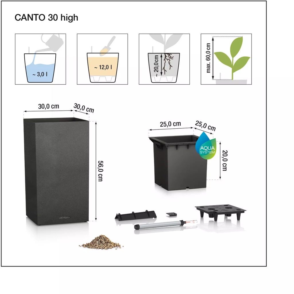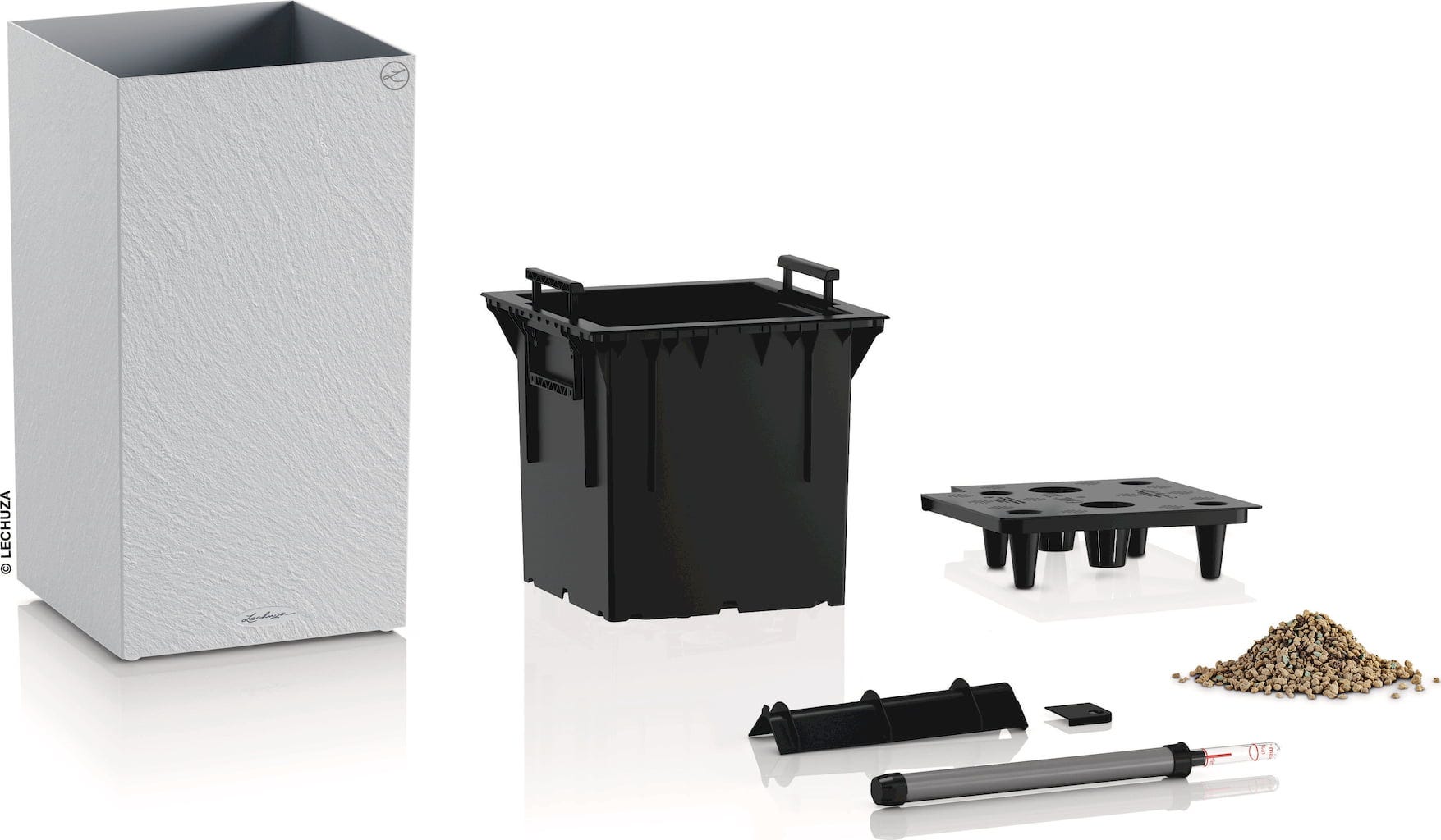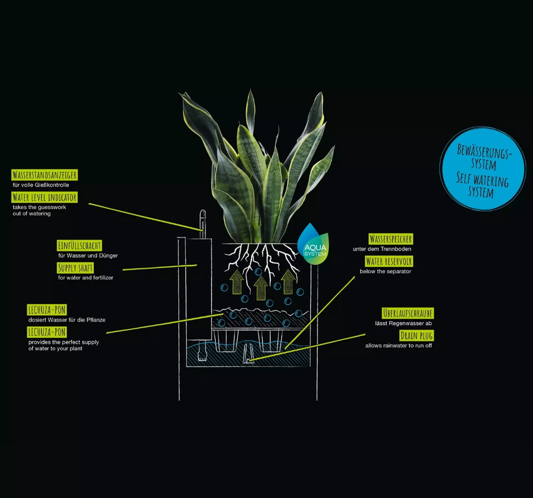 - Az integrált eredeti LECHUZA öntözőrendszer optimálisan ellátja a növényeket vízzel.