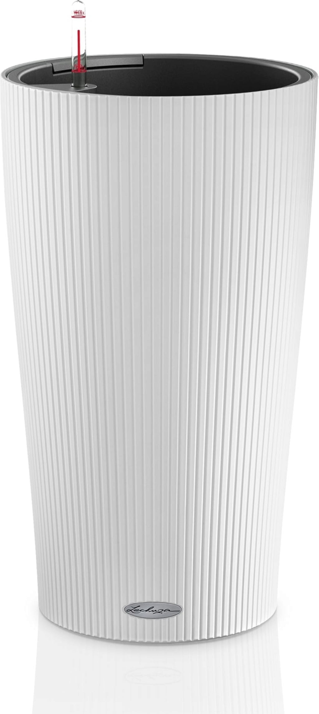 A Cilindro All-in-One szettként virágtartóval, betéttel, vízszintjelzővel és növényi szubsztrátummal felszerelt.