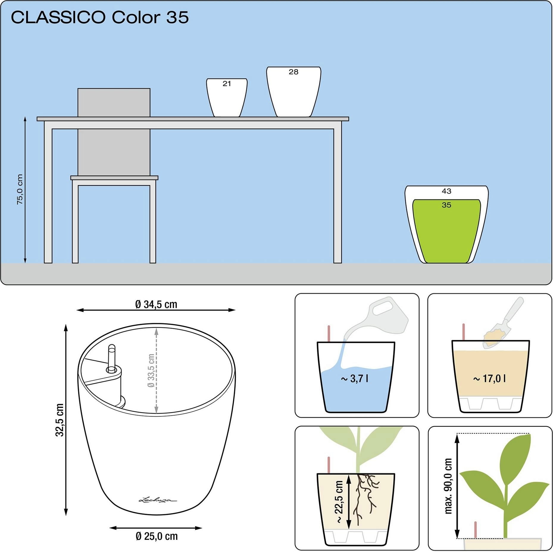 Vásárlói vélemény magyar nyelven: Lechuza CLASSICO Color 35 virágtartó