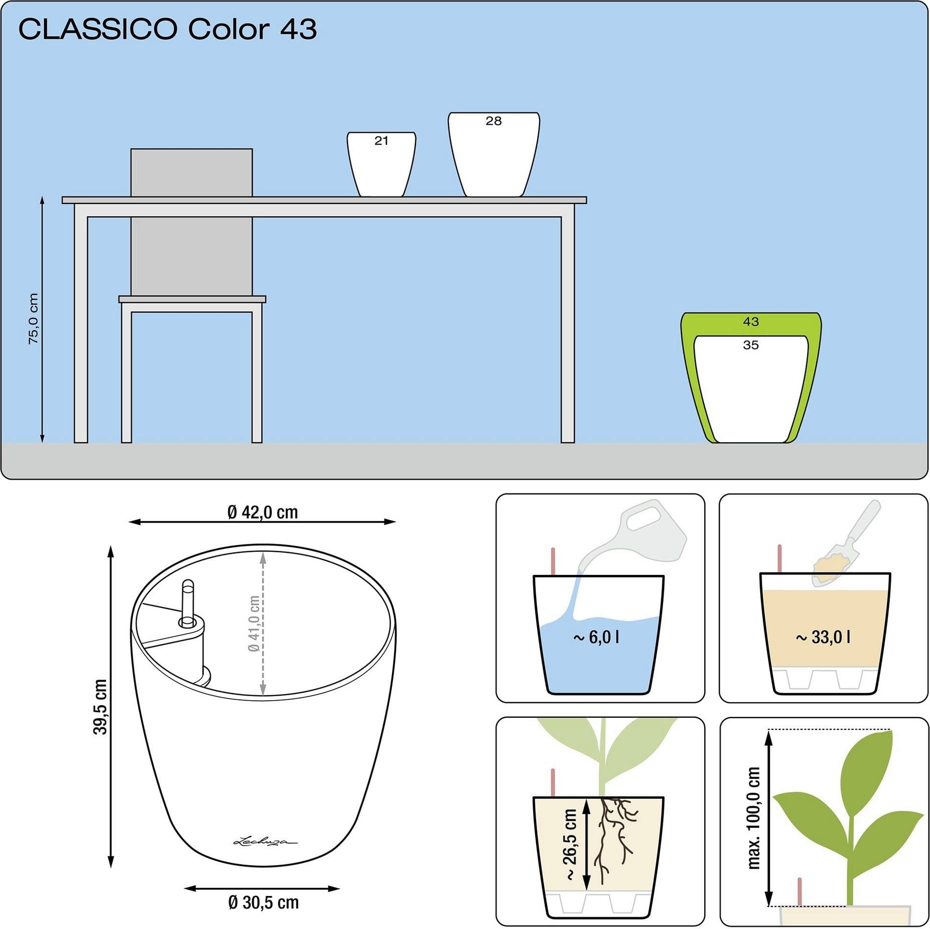 A Lechuza Classico Color 43 virágtartó különösen gyönyörűen középponta állítja növényeit - bel- és kültéren egyaránt. Az időtlen dizájn csodálatosan ideális minden környezethez - akár a nappaliban, az étkezőben, a teraszon, vagy az erkélyen.