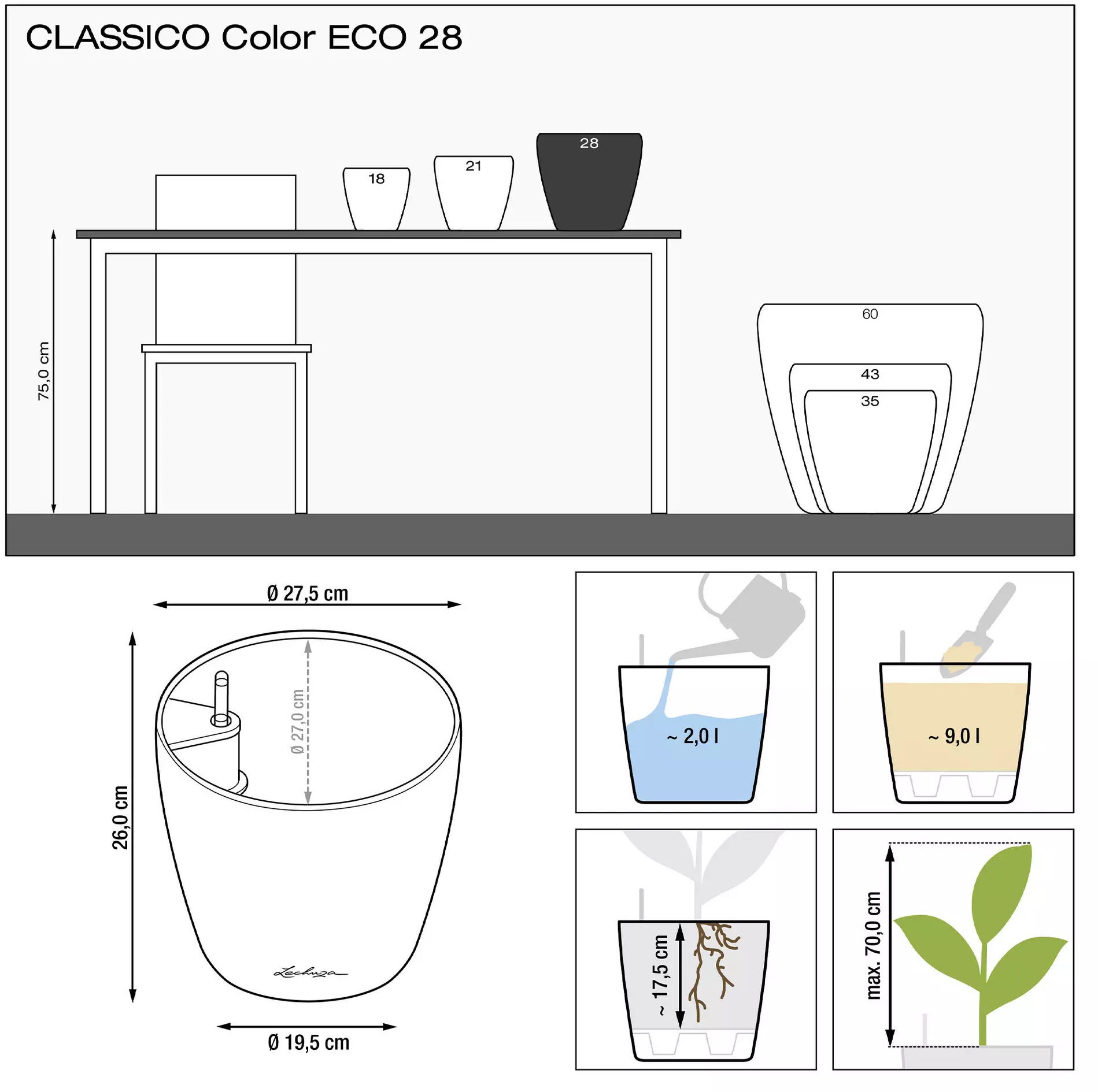 Lechuza CLASSICO Color ECO 28 virágtartó, Sötét szürke
