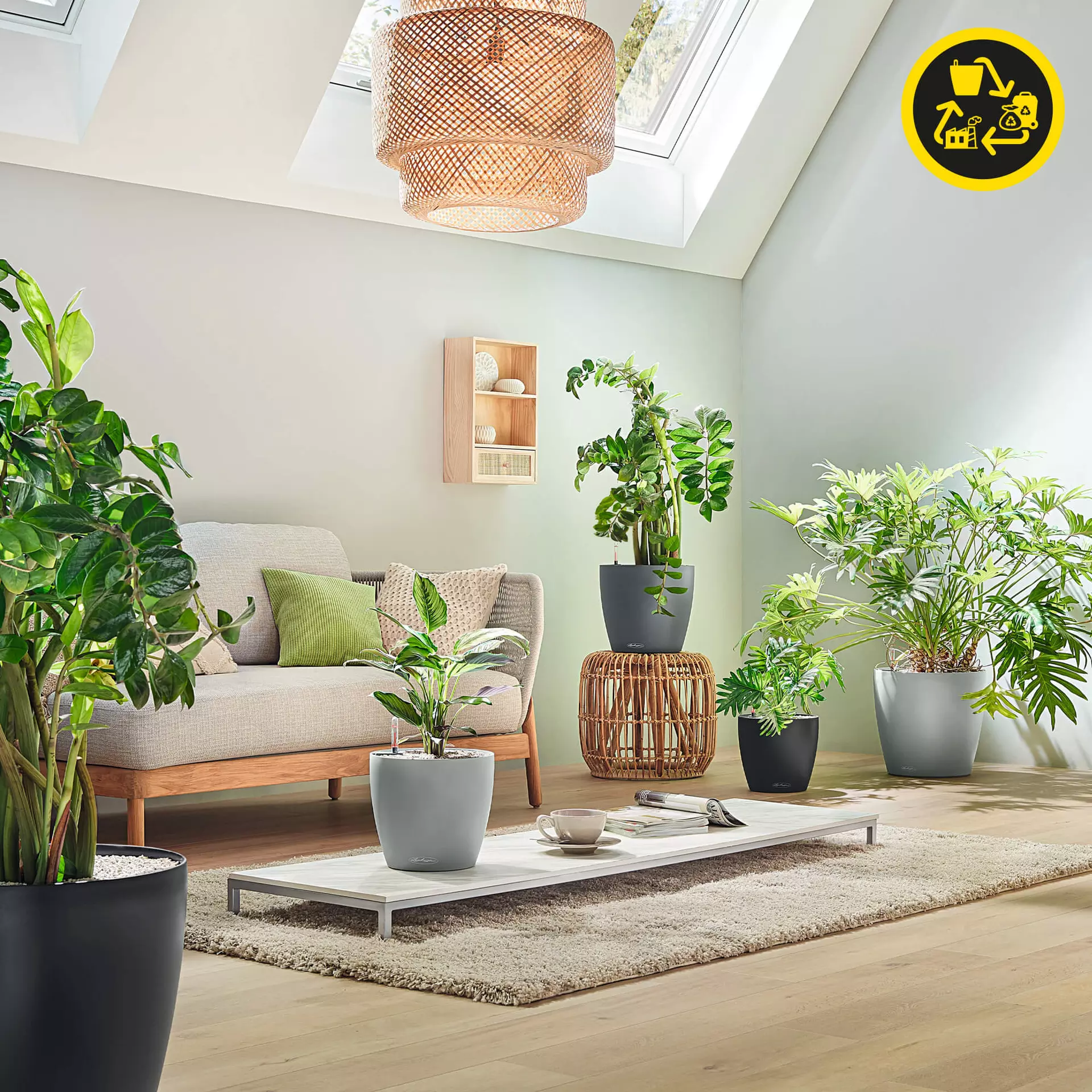 Az innovatív "ECO"-sorozattal a Lechuza bemutatja első, teljesen újrahasznosított műanyagból készült virágtartóit. Ezáltal fenntartható, CO2-kibocsátást csökkentő körkörös gazdaság jön létre, amely a saját termelési hulladékát és a sárga kukából származó műanyag hulladékot is stílusos virágtartókká dolgozza át a megszokott kiváló Lechuza-minőségben.