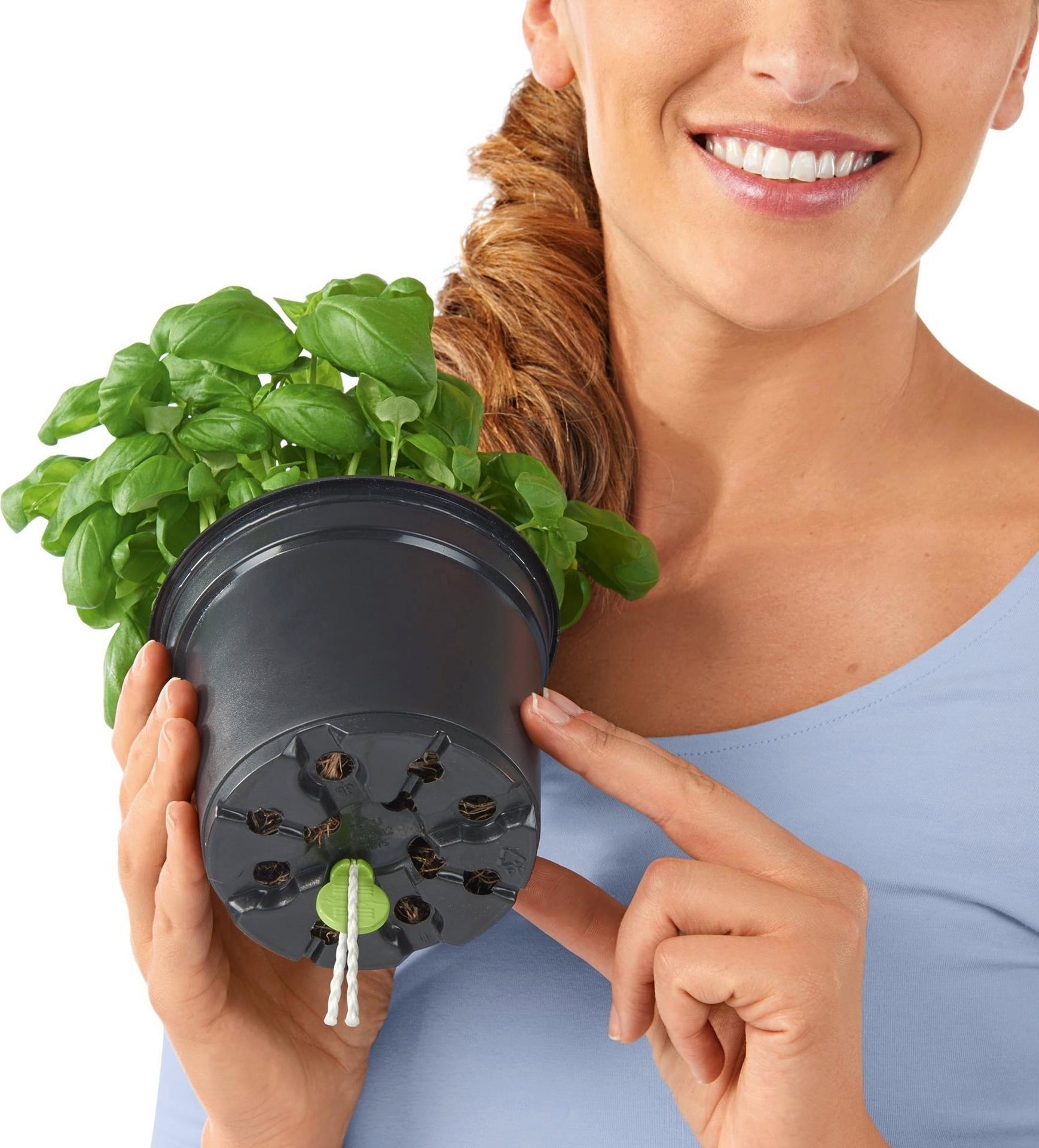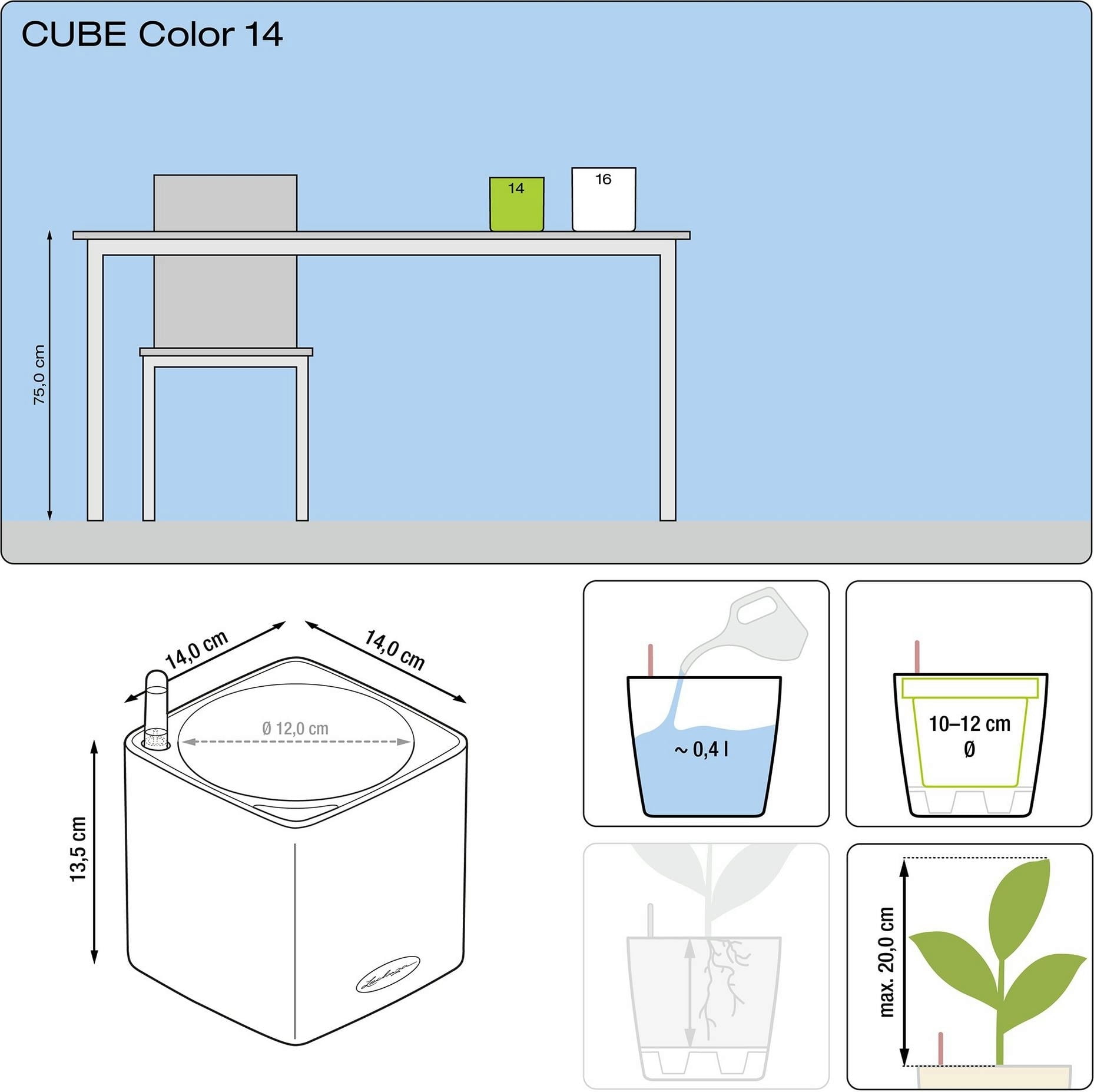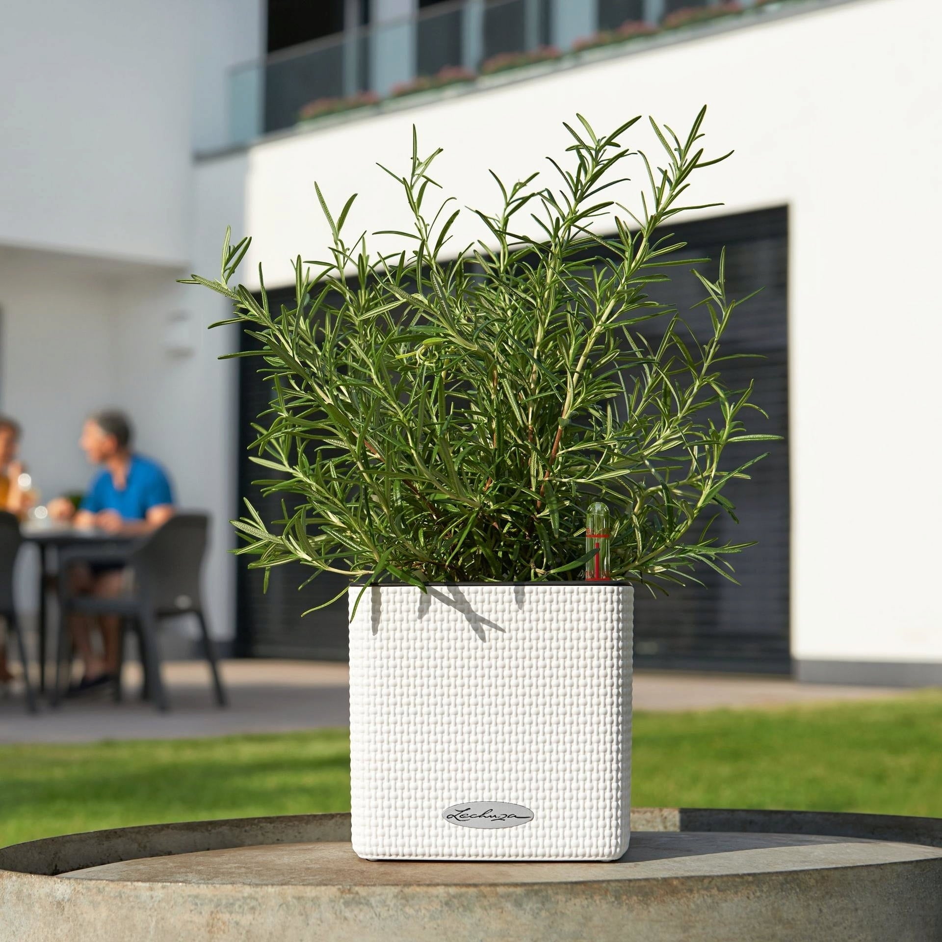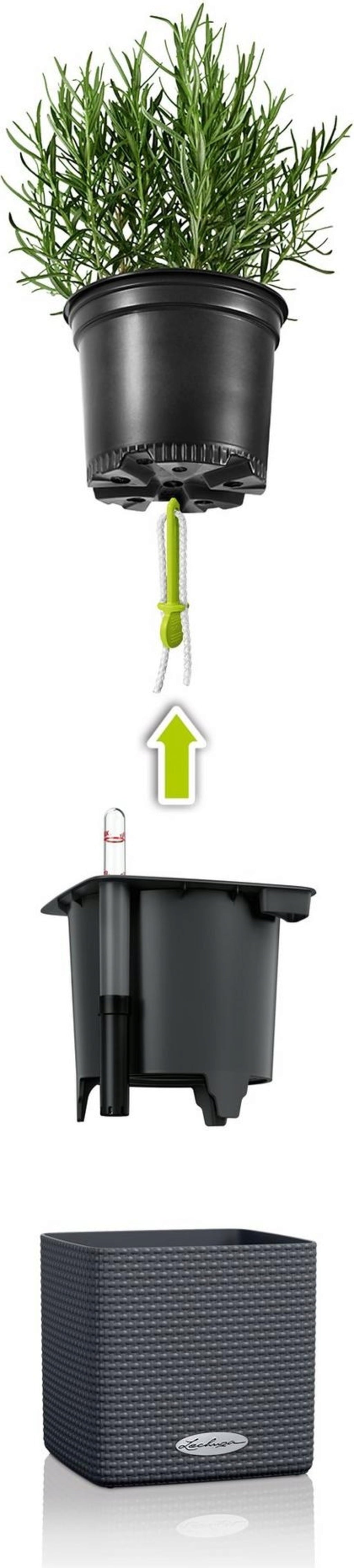 A Lechuza csinos kis fűszernövényes cserép Cube Color 14 stick-öntözőrendszerrel rendelkezik. A kultúrcserépben lévő bazsalikomot, metélőhagymát vagy rozmaringot a virágtartóba helyezheti, ültetés már nem szükséges. Egyszerűen dugja a mellékelt sticket a fűszernövényes cserép aljába, és öntözze meg a szokásos módon. A növény felveszi a szükséges mennyiségű vizet.