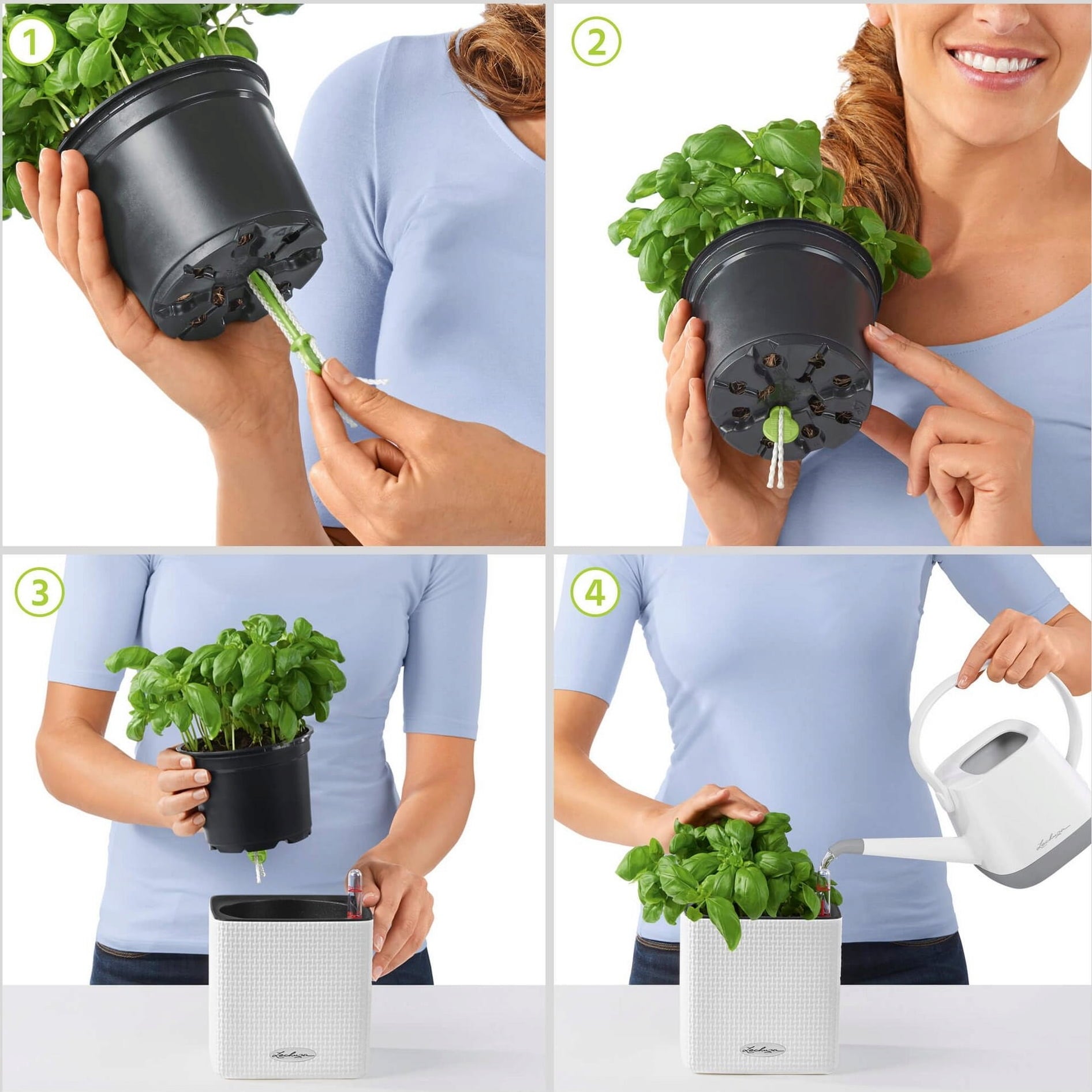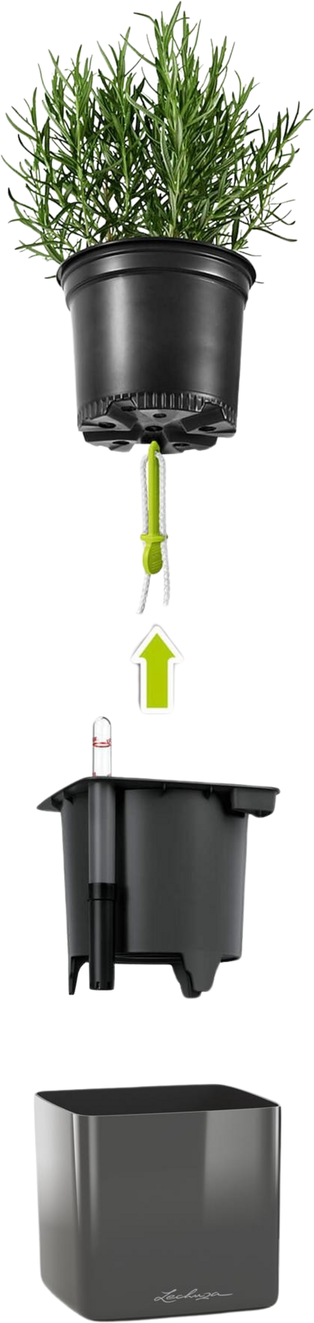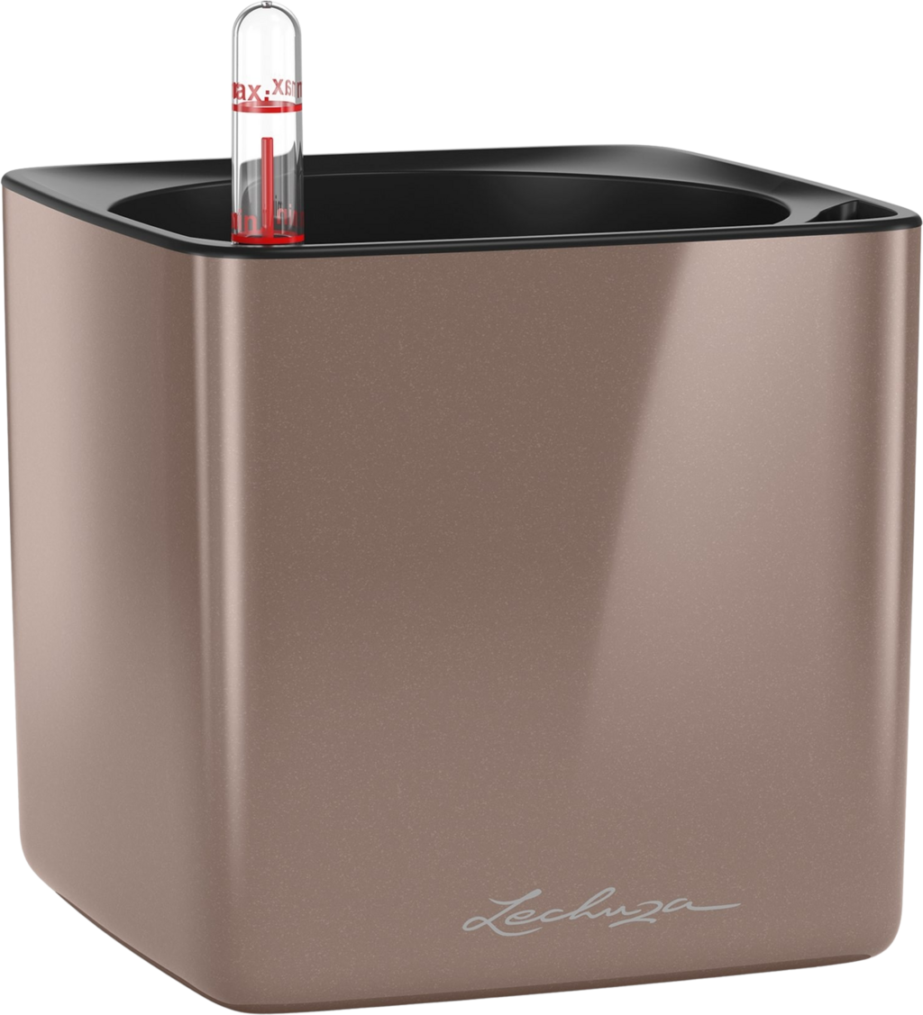 Hogy a növények ápolásával ne menjen el túl sok ideje, a Lechuza öntözőrendszer gondoskodik a növények ellátásáról. A növények könnyen elhelyezhetők a Glossy-kollekció virágtartóiba a kultúrcseréppel együtt, időigényes átültetés nélkül. A kultúrcserépbe alulról elhelyezett stick egyenletesen szállítja a nedvességet a gyökerekhez. A vízszintjelző segítségével ellenőrizhető, hogy mikor kell újra öntözni.