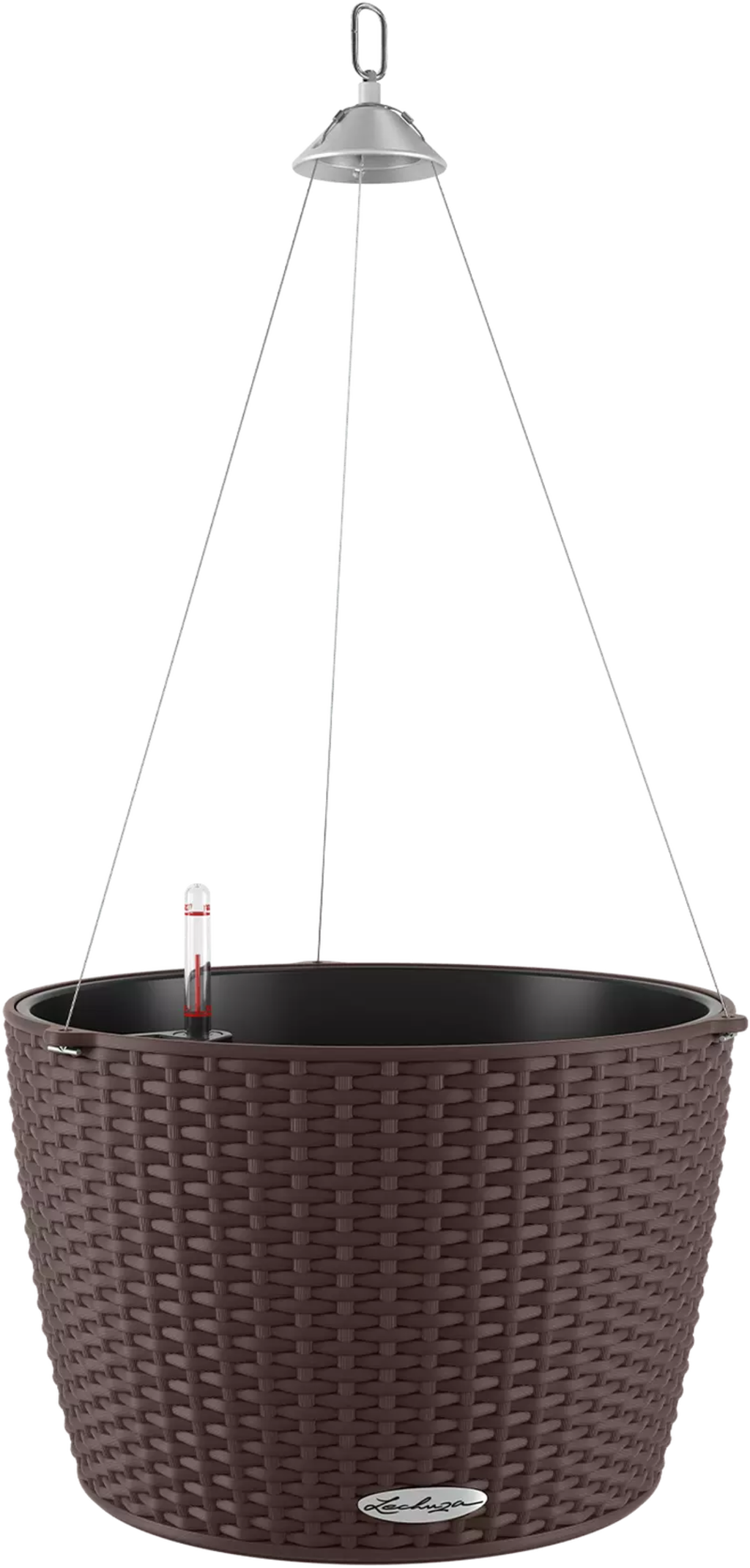 A gyönyörű függő virágtartó szemmagasságban tökéletesen mutatja be a virágok ragyogó pompáját. Kiváló minőségű, fagy- és UV-álló műanyagból készült, így ideálisan használható az erkélyeken és teraszokon. A kivehető túlfolyási csavarral ellátott nagy víztartály mindig tökéletes öntözést biztosít. A Lechuza "Cottage"-kollekció vonzó fonatszerkezete igazi vidéki hangulatot garantál még a legkisebb erkélyen is.