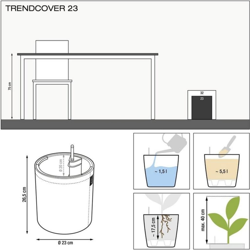 A különleges Trendcover természetes szerkezetű parafa felületével egyedülállóan hangulatos érzést biztosít, valamint rugalmasan kombinálható. A teljes szett tartalmaz egy funkcionális betétet is, okos Lechuza öntözőrendszerrel. A praktikus fogantyúknak köszönhetően a betétek egyszerűen és bonyodalmak nélkül kicserélhetők.