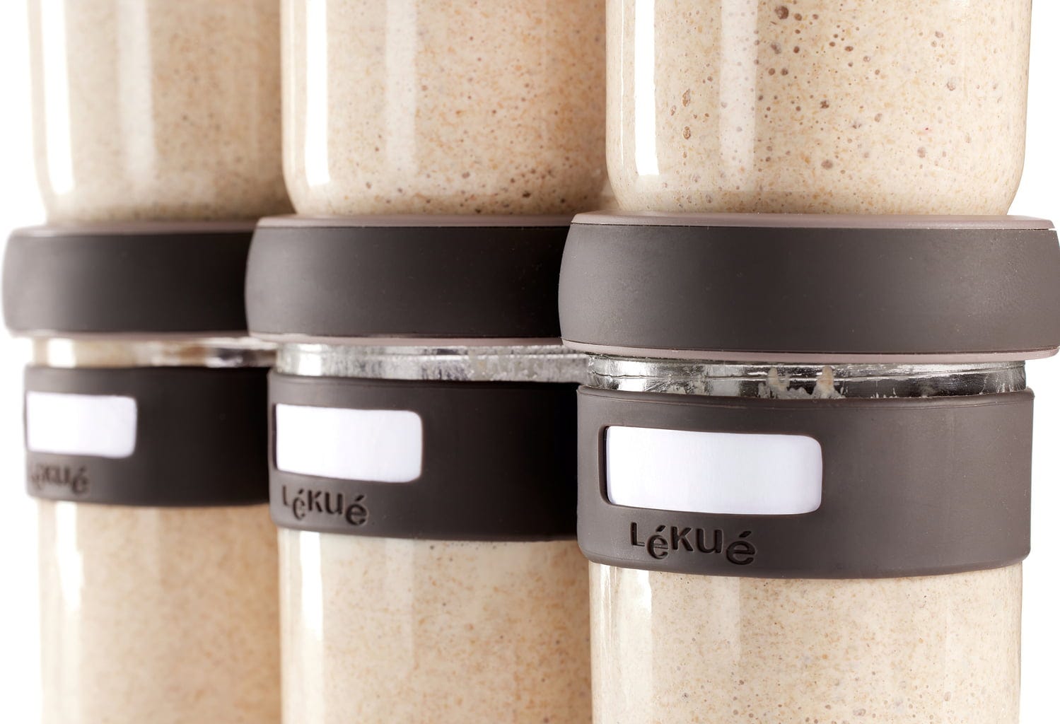 Keltse életre a kenyérsütés hagyományos művészetét, és készítse el saját, karakteres kovászát – az ipari élesztő 100%-ban természetes alternatíváját! Ez a szett mindent tartalmaz, amire az induláshoz szüksége van: két speciális üvegedényt átgondolt részletekkel és egy kézreálló spatulát. Minden üvegtartály beépített szeleppel ellátott fedéllel rendelkezik, amely lehetővé teszi az erjedési folyamat során keletkező gázok kíméletes távozását. Egy szilikoncsík praktikus jelölésként szolgál a töltési magassághoz, és egy kiegészítő szilikongyűrűvel pontosan megfigyelheti, hogyan kel meg a tészta és hogyan nő a térfogata.