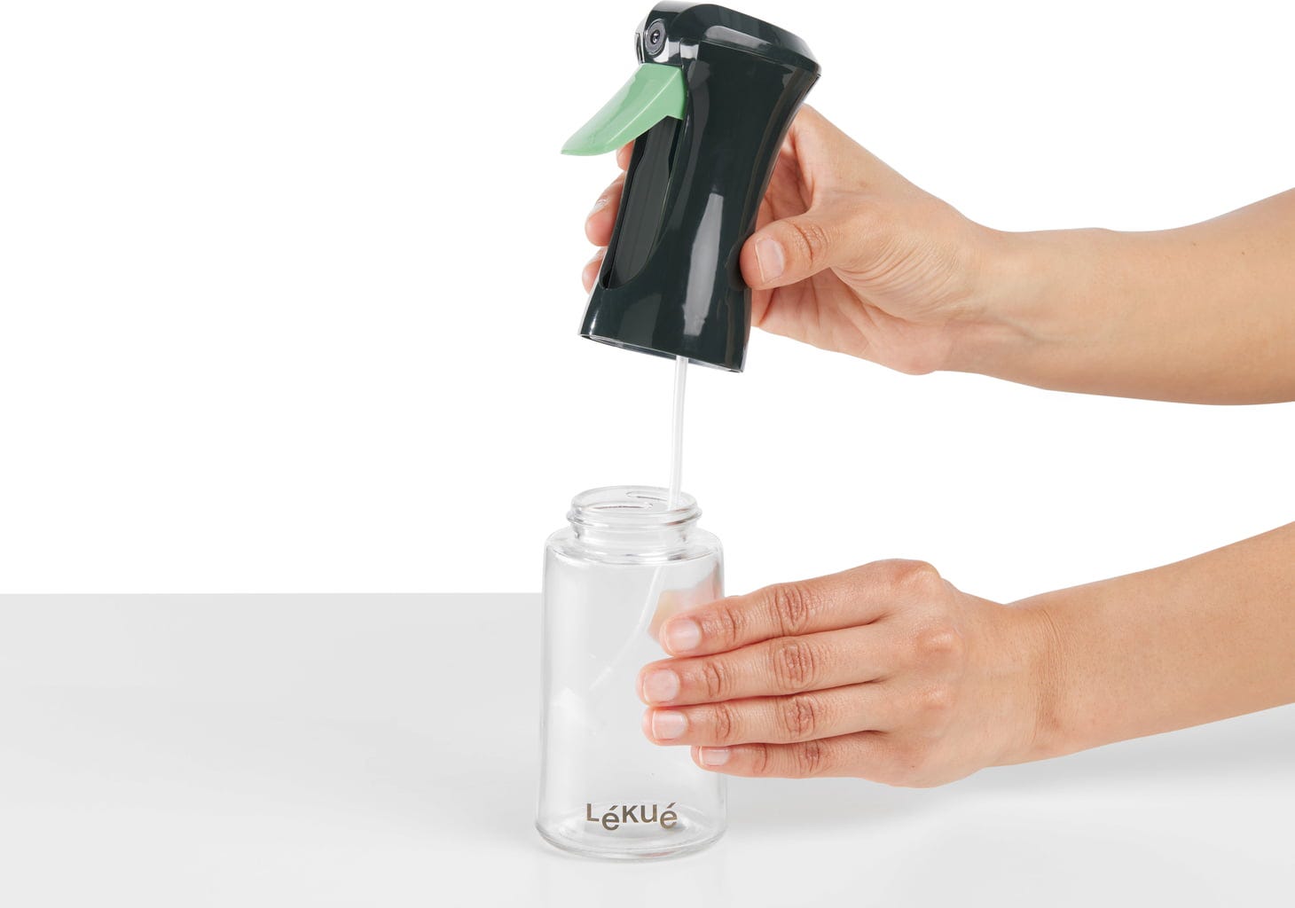 Az okos eltömődésgátló szűrő még a kiváló minőségű olívaolaj esetében is megbízható, egyenletes eloszlást biztosít, és megakadályozza a szennyeződések lerakódását. A könnyen kezelhető kioldó teljes kontrollt biztosít: egy határozott, gyors nyomás elegendő a tökéletes porlasztáshoz és a pontosan megfelelő mennyiségű olajhoz.