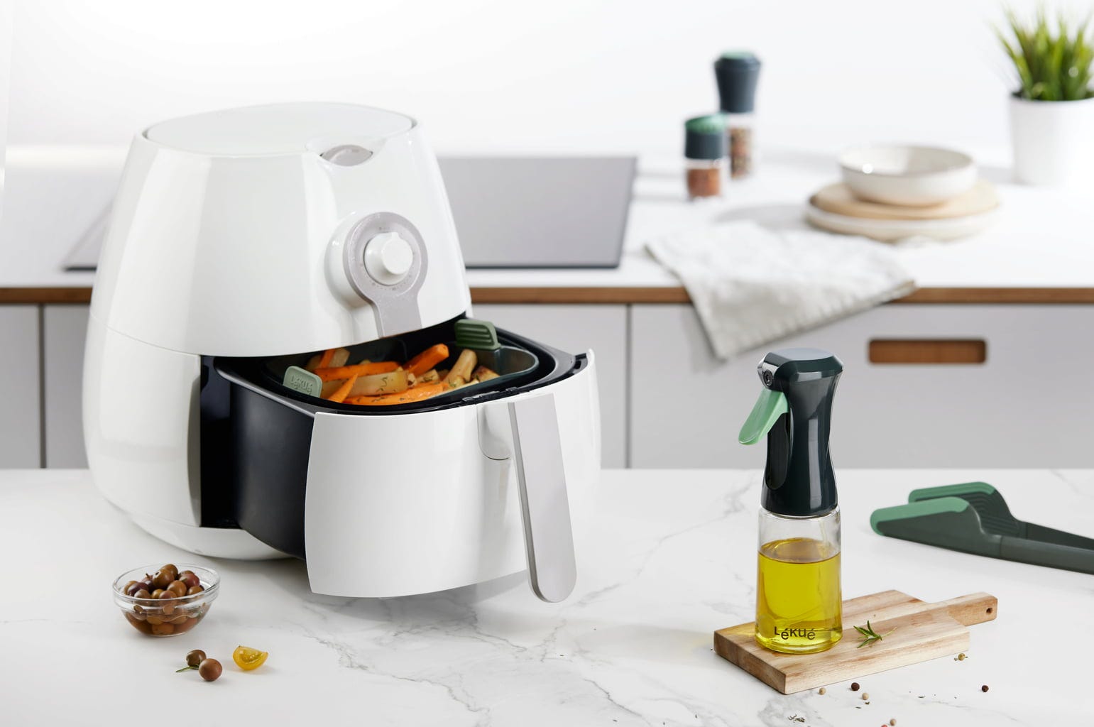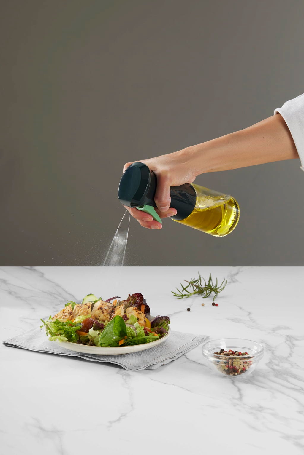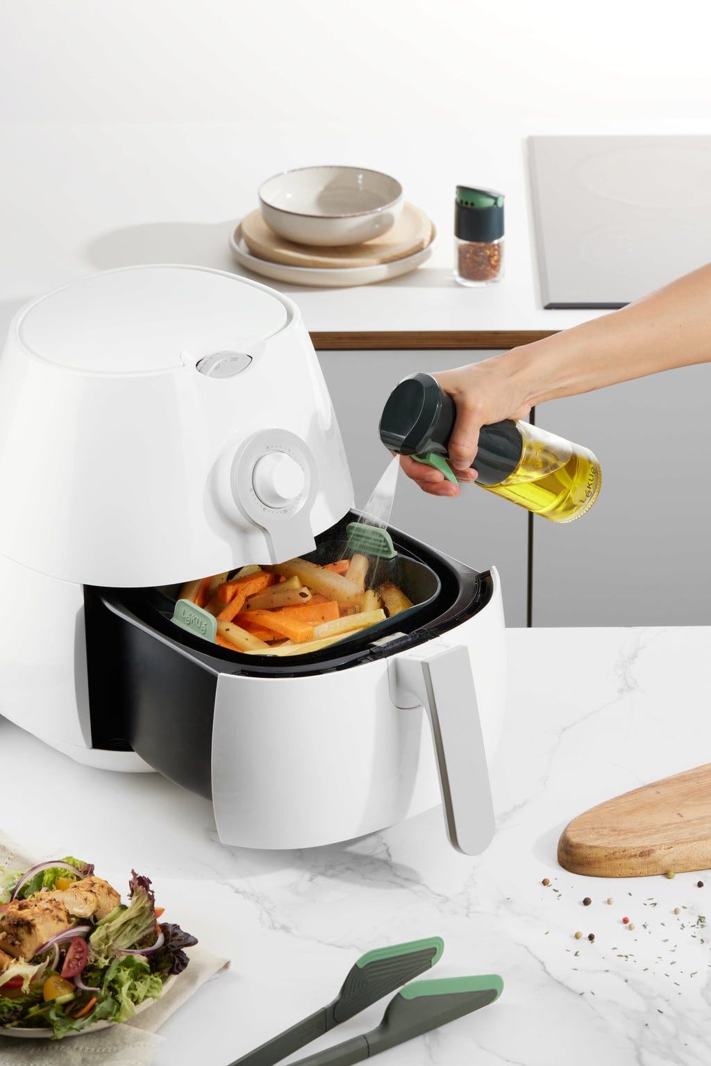Szereted a forrólevegős sütőben vagy serpenyőben készült ropogós ételeket, de tudatosabban és takarékosabban szeretnéd használni az olajat? Ez az olajpermetező pontosan az a segítőtárs, amire szükséged van! Finom, legyező alakú permetének köszönhetően az összetevőket – a ropogós cukkini chipstől a szaftos csirkéig – egy hajszálvékony, teljesen egyenletes olajréteggel vonhatod be.