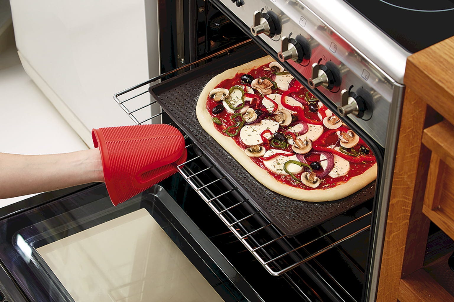 Ennek a speciális formának a titka a mikroperforált felületében rejlik. Ezek az okos kis lyukak a kulcsai a különösen ropogós tésztának: sütés közben lehetővé teszik a forró levegő optimális keringését, és a felesleges nedvesség távozását a tésztából. Az eredmény egy mindenhol egyenletesen átsült alj, amely csodálatosan ropogós lesz, és nem ázik el.