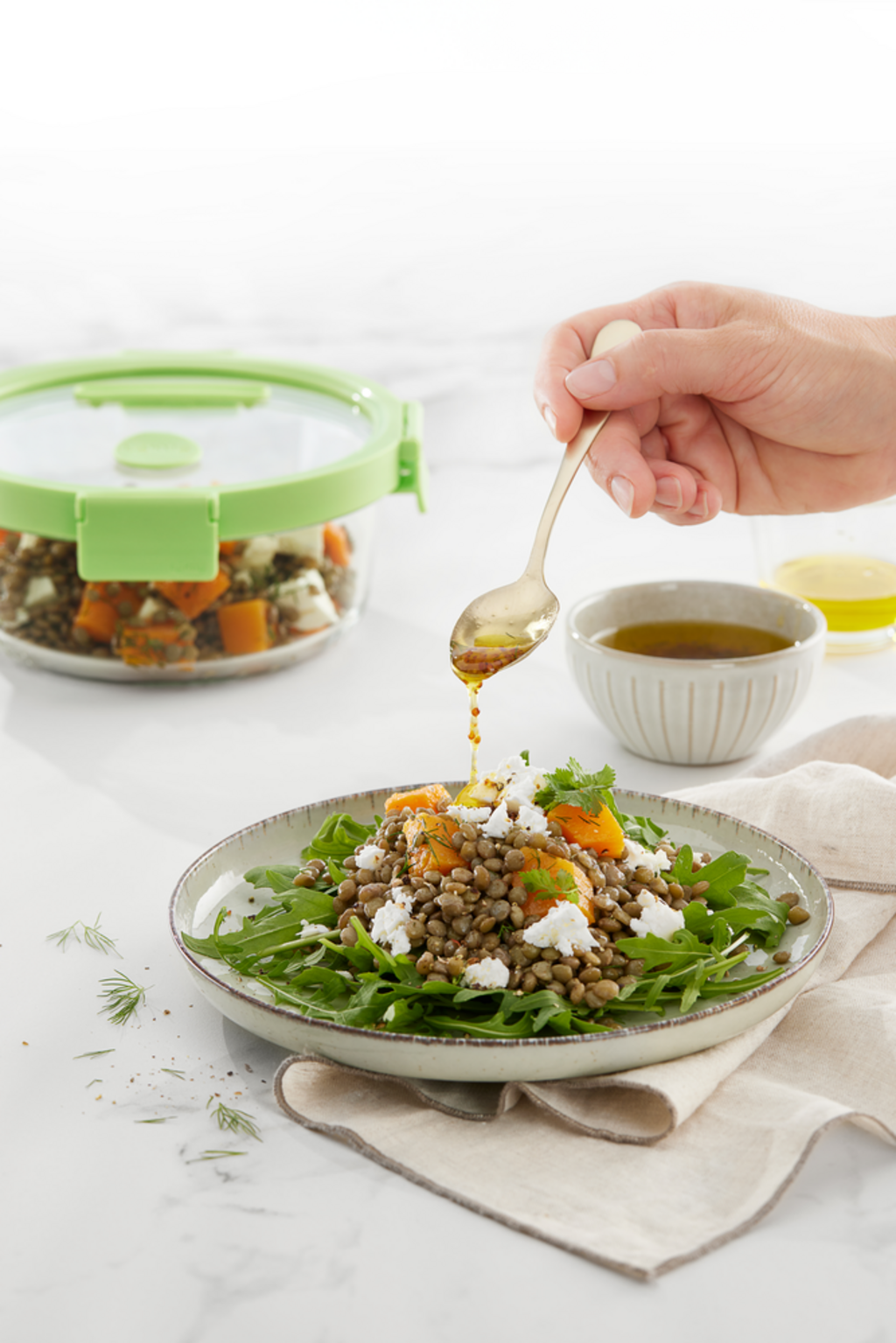 A hőálló üvegfedélnek köszönhetően a tároló 100%-ban légmentesen záródik – így az aromák megmaradnak, a műanyag fedeleknél néha tapasztalható kellemetlen szagoknak vagy elszíneződéseknek pedig esélyük sincs. A fedélben található okos szelep lehetővé teszi, hogy az ételeket közvetlenül a mikrohullámú sütőben melegítse fel! Annak érdekében pedig, hogy mindig tudja, mikor tette el az ételt, a fedél praktikus dátumkijelzővel rendelkezik.