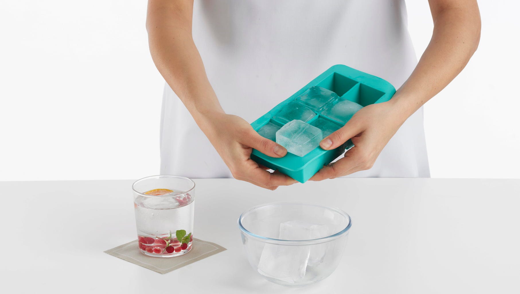 Egyszerűen töltse meg a formát a pereméig, helyezze rá szorosan az ötletes platina-szilikon fedelet – ez nemcsak a tökéletes formájú jégkockákról és a nemkívánatos fagyasztószagok elleni védelemről gondoskodik, hanem a stabil aljnak köszönhetően a fagyasztóba való cseppmentes szállítást is lehetővé teszi. Amint a jég megfagyott, a kockák egyszerűen kinyomhatók a formából.