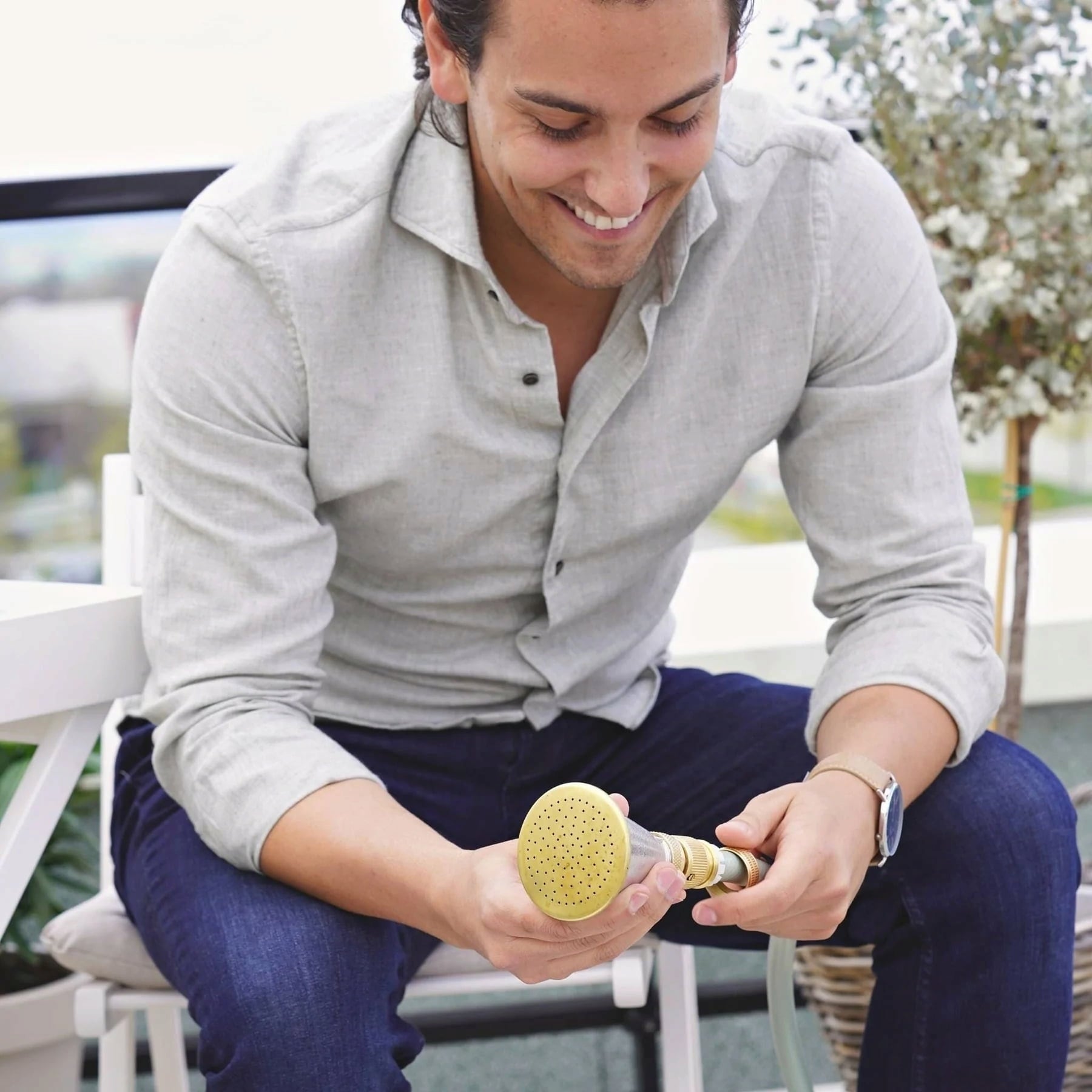 Ez a kiváló minőségű sárgarézből készült locsolófej tökéletes kiegészítője a Livlig53 Design kerti tömlőknek. A stílust kedvelő hobbikertészek számára kötelező darab. Autentikus öntözőkanna érzést, ugyanakkor magas szintű kényelmet és hatékony öntözési teljesítményt nyújt.