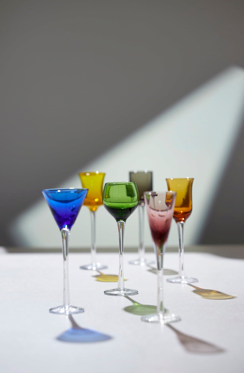 Lila, kék, füst, borostyán, zöld és sárga színben kaphatók, és nemcsak színes hangulatot teremtenek az asztalnál, hanem megkönnyítik a vendégek számára a poharak gyors megtalálását is.