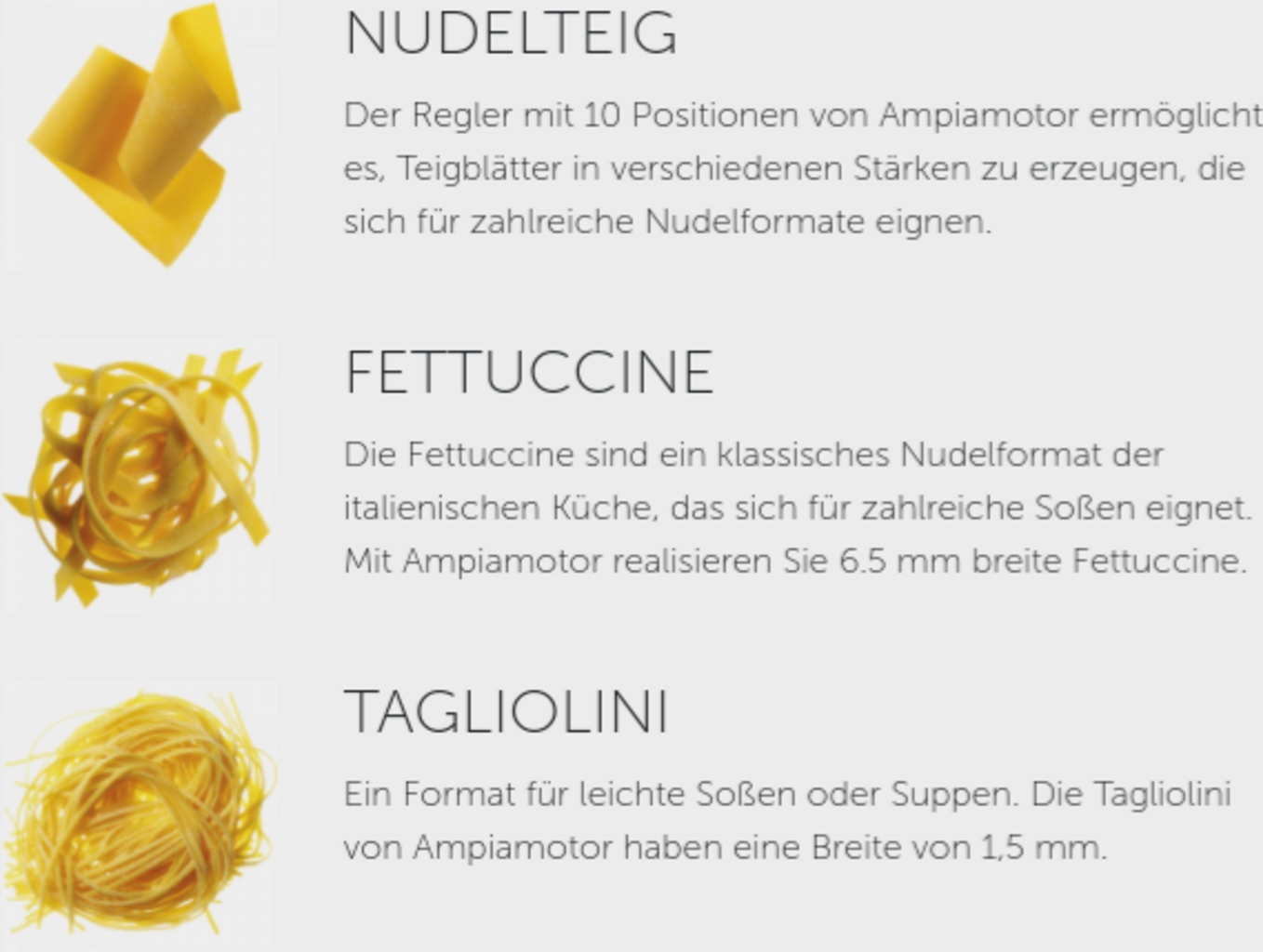 - 3 féle tésztához: lasagne, fettuccine és tagliolini