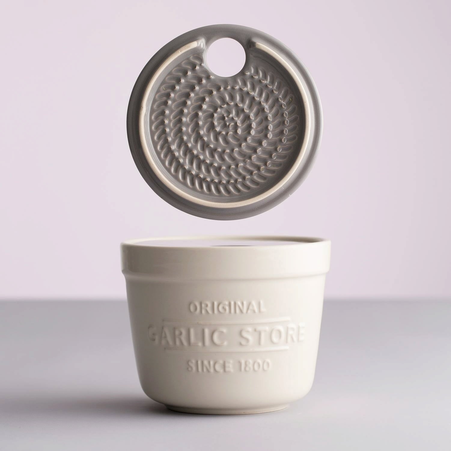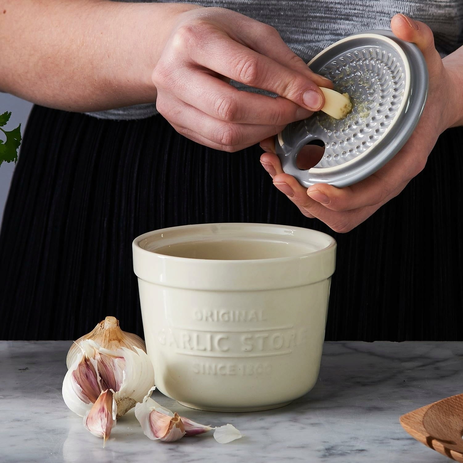 A 2n1 fokhagymatartó ideális reszelőként vagy fokhagyma tárolására. A tartóban szellőzőnyílások vannak, amelyek tovább tartják frissen a fokhagymát, és a fedélben integrált reszelő található. A kiváló minőségű és hagyományos fokhagymatartó nagyon robusztus, tartós, és az üvegezett mázazott agyagnak köszönhetően törésálló mosogatógépben mosható és mikrózható. A multifunkcionális fokhagymtartó ideális műanyagmentes alternatíva a konyhában.
