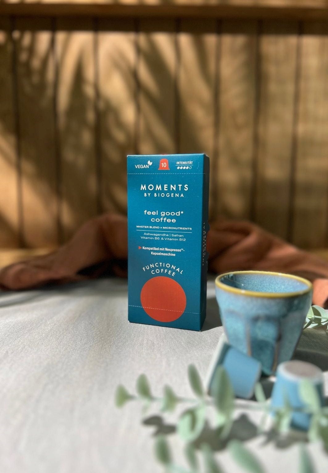 A feel good* kávé aszwagandhával, sáfránnyal, B6- és B12-vitaminokkal kiváló minőségű frissítést kínál a napi kávézási rituáléhoz. Az íze kompromisszumok nélkül egyedülálló, az összetétele kiváló minőségű, a kezelése pedig különösen kényelmes.