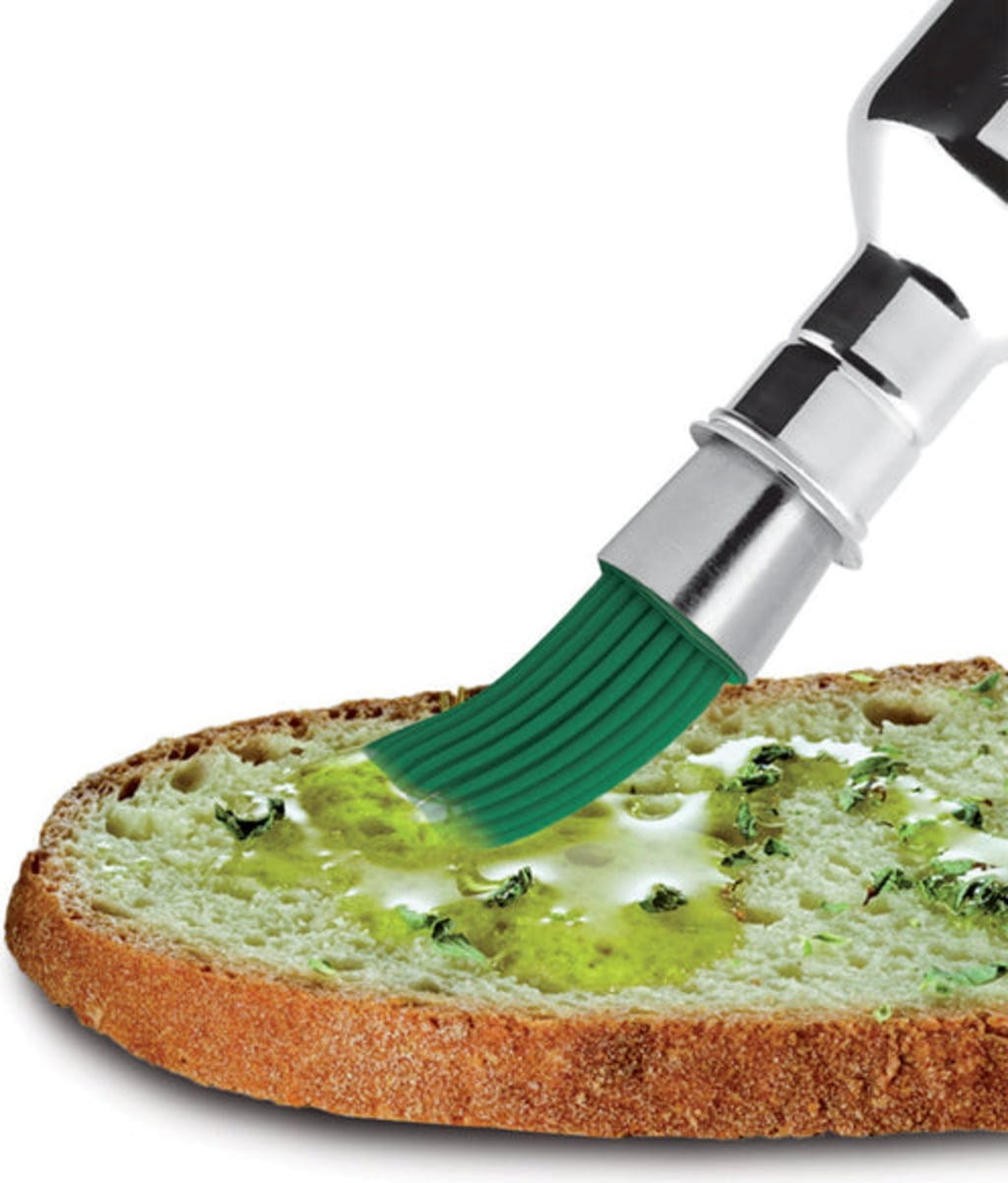 Kiöntés, kenegetés, adagolás. A szilikon ecsetfejjel praktikus módon viheti fel a nagyszerű olíva- vagy tökmagolajat a kenyérre. Vagy megkenheti vele a zöldségeket. Egy valóban nem lebecsülendő eszköz, amely lehetővé teszi a kontrollált adagolást ott, ahol folyadékra van szükség, de kis, egyenletes mennyiségben.