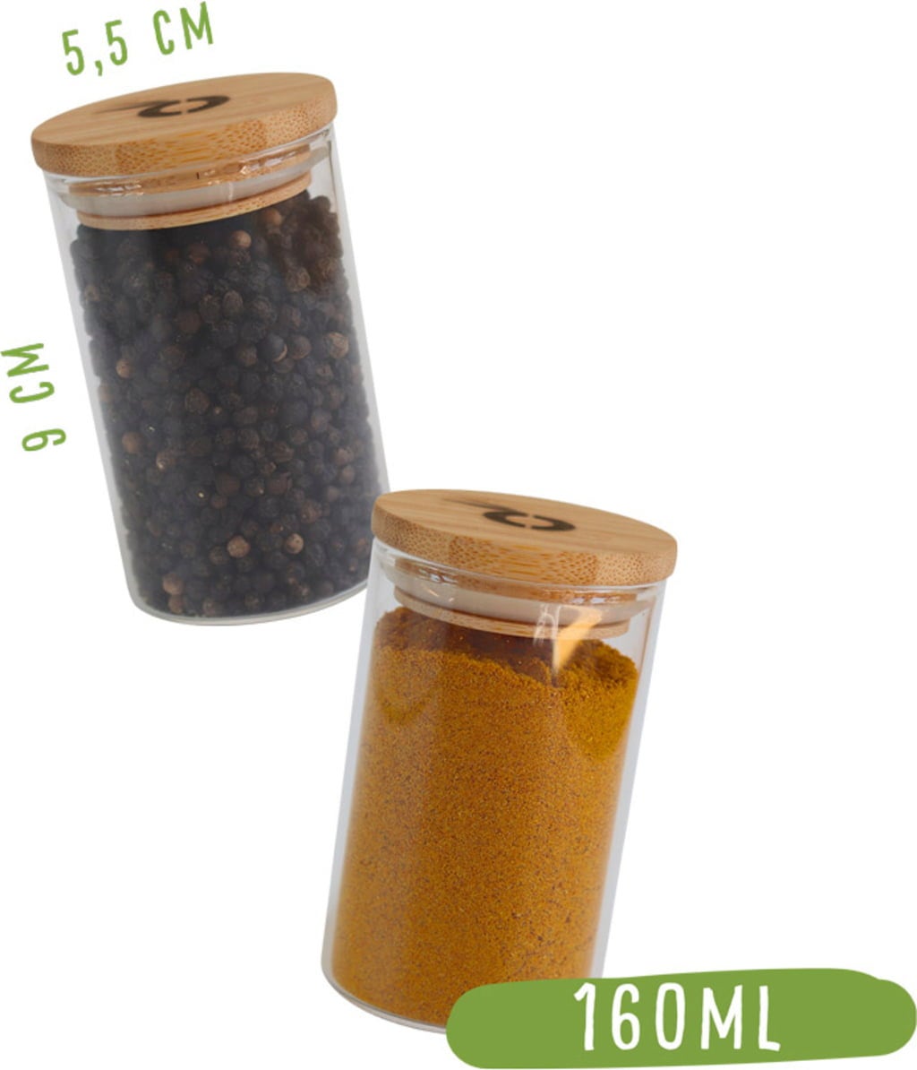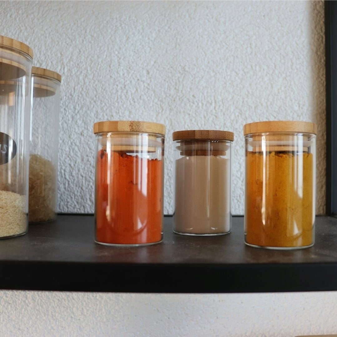 Ezekkel a robusztus boroszilikát üvegből és természetes bambuszból készült tárolóüvegekkel pillanatok alatt rendet teremthet fűszertartó polcán!