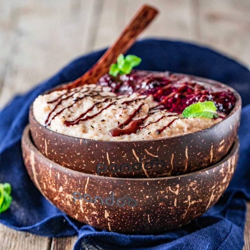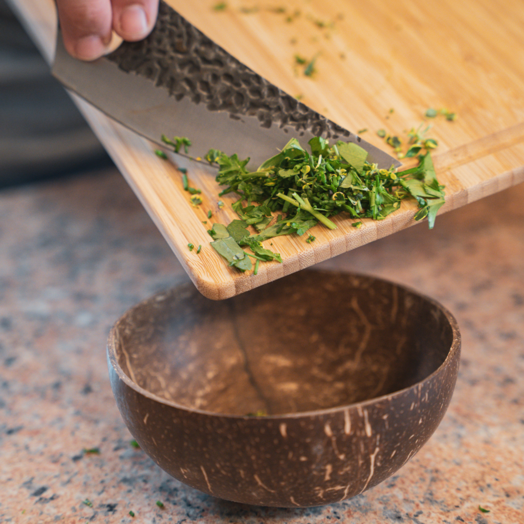 Ezzel a két kókuszfából készült kanálból és két kókuszdióhéjból készült tálból álló készlettel nemcsak természetes és esztétikus kiegészítőkről gondoskodhat étkezőasztalán, hanem az értékes erőforrások újrahasznosításában is segíthet!