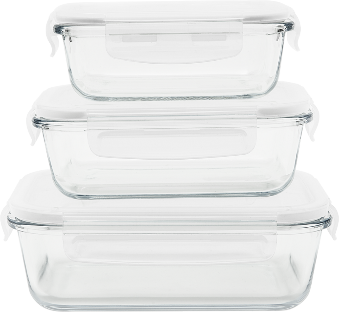 Ételtároló edény, téglalap alakú, üveg/PP - 3 darabos készlet