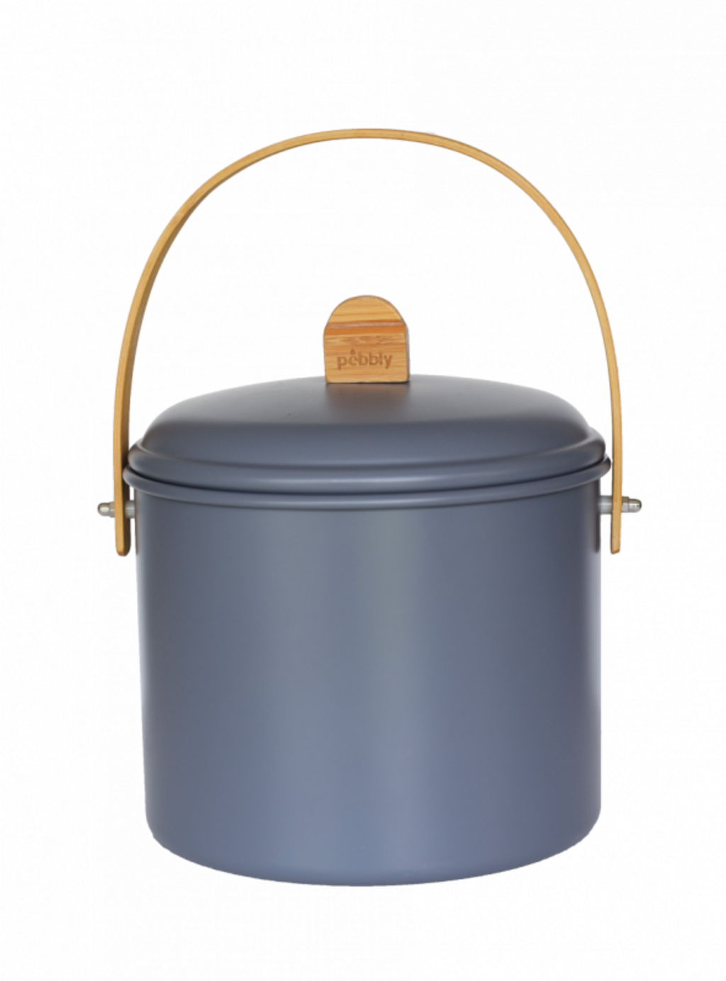 Pebbly Komposzttartó 7 Liter - Fémből és bambuszból, Agyagszürke