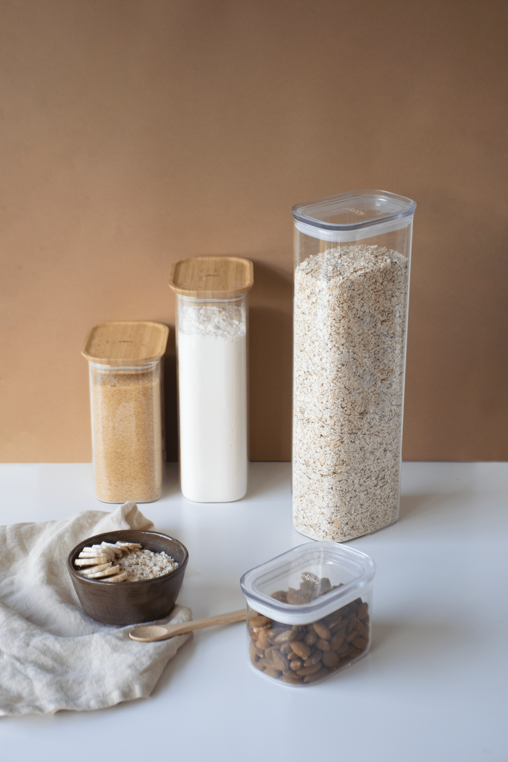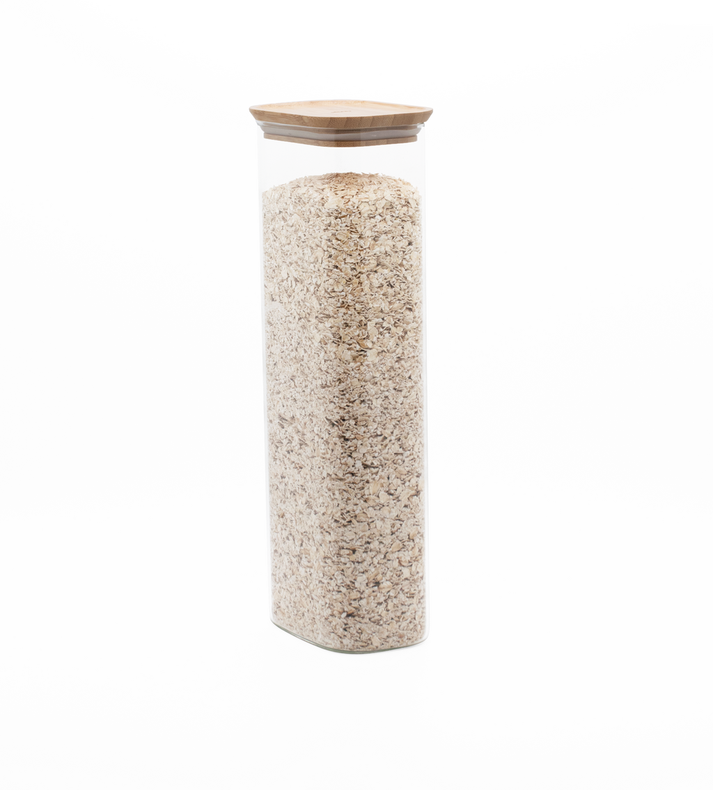 Ez a tárolóedény robusztus boroszilikát üvegből készült, és stílusos, természetes bambuszból előállított fedéllel rendelkezik. A bambusz nemcsak jól néz ki, hanem gyorsabban is nő, mint a fa, és sokkal kevesebb vizet igényel.