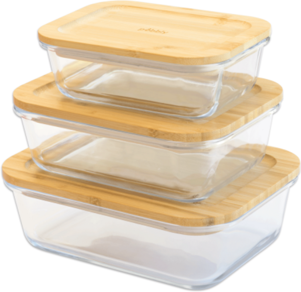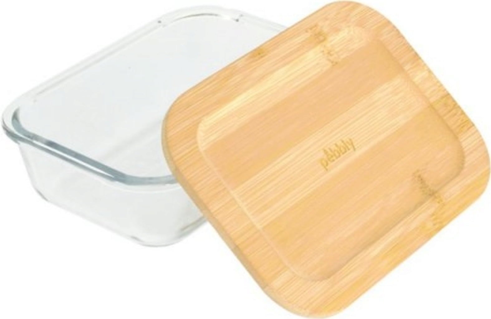 Pebbly Tárolóedény - Üvegből, bambusz fedéllel, 1 darab, 0,64 Liter