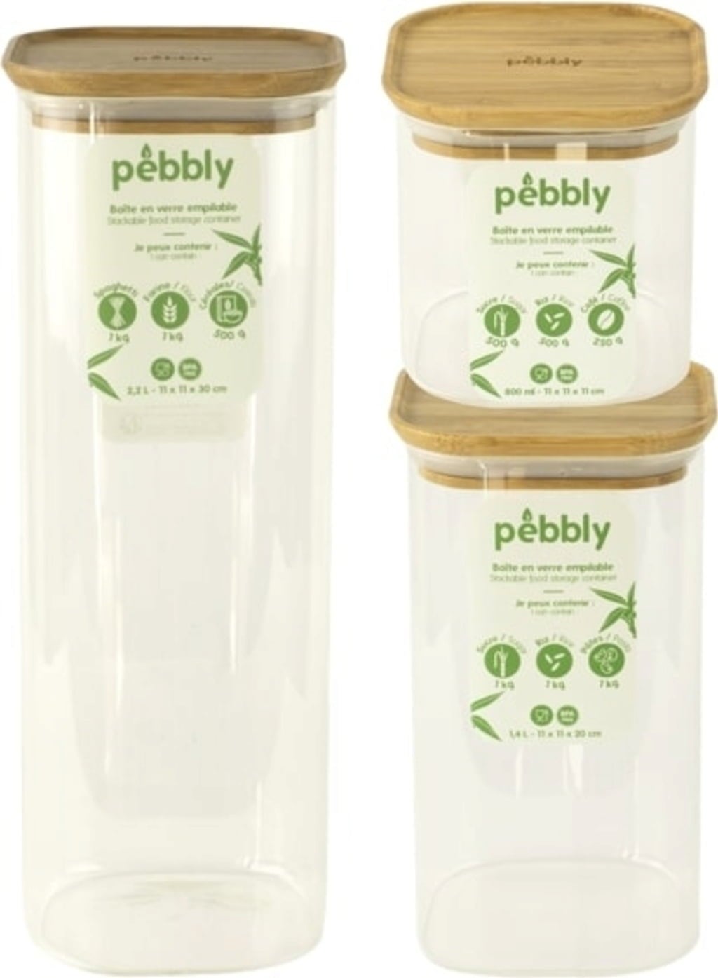 Pebbly Üveg tárolóedény bambusz fedővel - 3 db-os készlet
