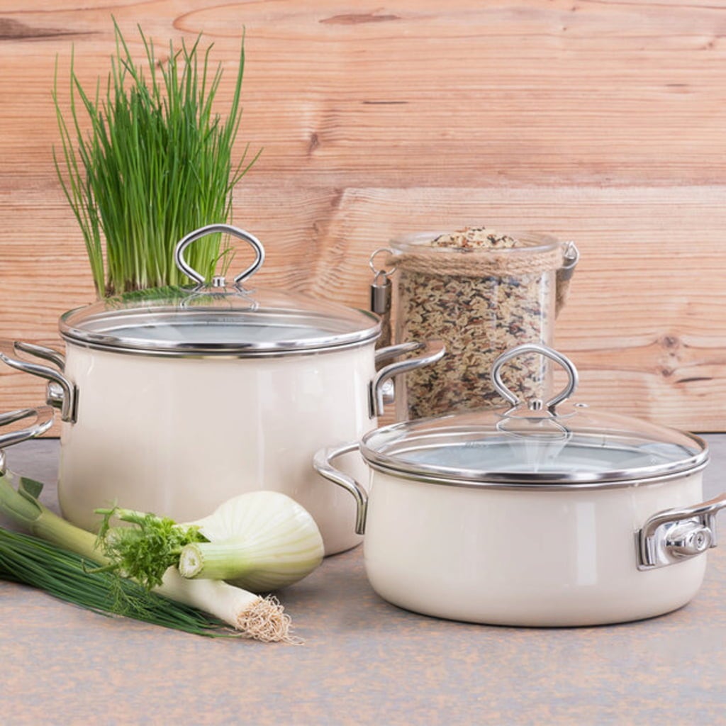RIESS elefántcsont színű edények kiváló minőségben - mindazoknak, akik értékelik az elegáns színeket, a modern formákat és a magas funkcionalitást. Csúcsminőségben kivitelezve, extra erős acél hőtároló aljjal és üvegtetővel!