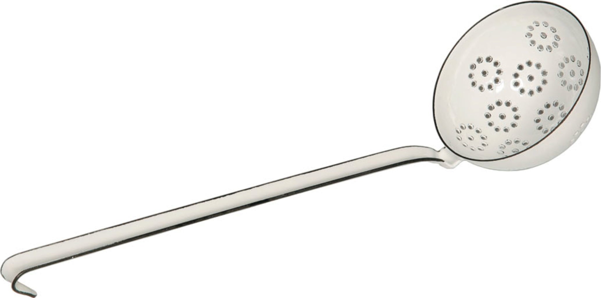A forró víz átfolyik a szép virágmintán, és csak a finom gombócok maradnak a kanálban. A klasszikus fehér színű szűrőkanál azokra az időkre emlékeztet, amikor a nagymama szenvedéllyel főzött nekünk. Tálaljon sok szeretettel, és az elkészített ételek garantáltan még finomabbak lesznek! A merőkanál hosszú fogantyúval rendelkezik a praktikus használat miatt, valamint egy hajlított véggel, amely lehetővé teszi a könnyed felakasztását.