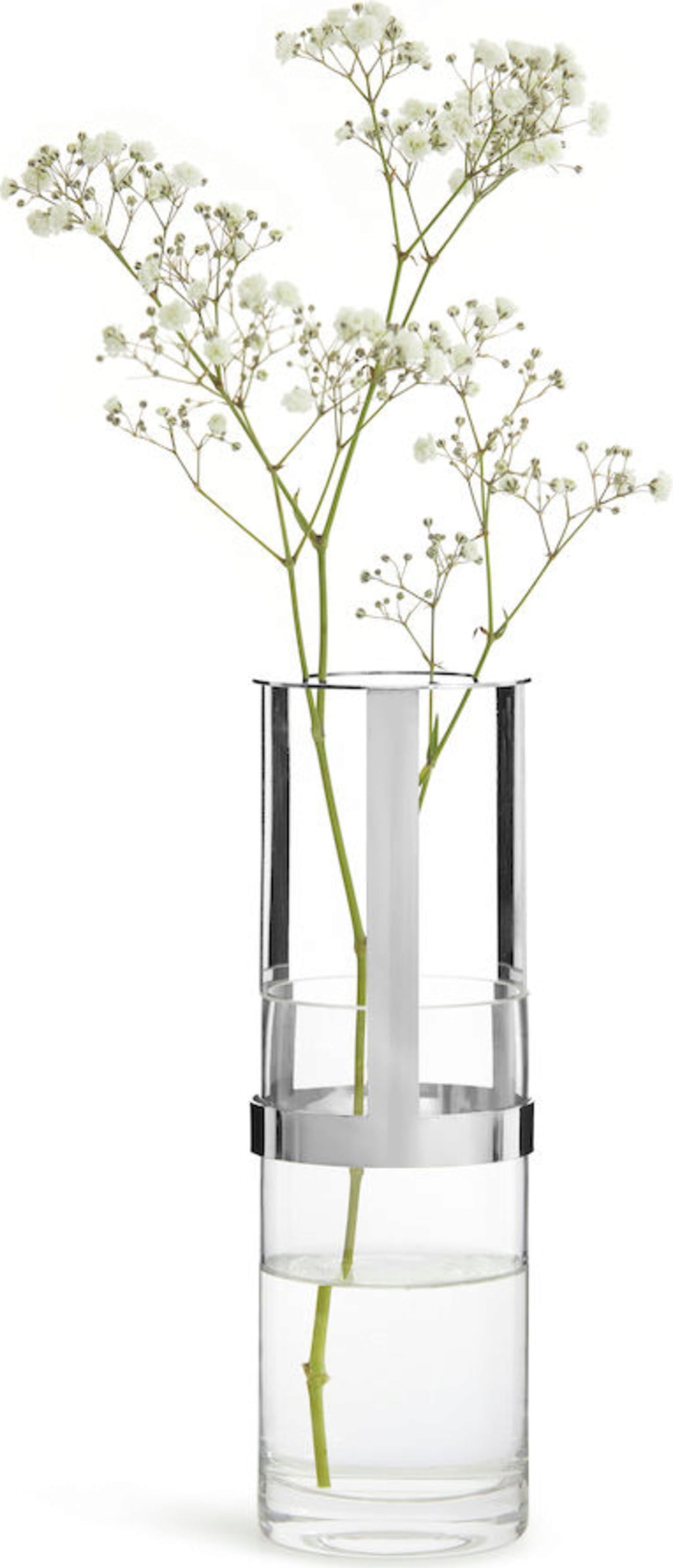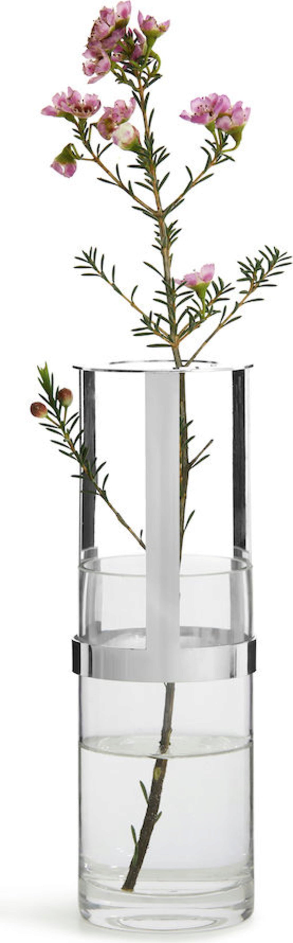 Ez az elegáns váza egyedi dizájnjával egyszerűen elvarázsoló, Pascal Charmolu tervező számos díjat kapott érte. Szájfúvott üvegből készült és állítható magasságú fémgallérral rendelkezik, ami nemcsak pompás megjelenését, de kiemelkedő funkcionalitását is adja. Felépítésének köszönhetően ez a váza optimálisan illeszthető a virágkompozíciók magasságához. A szép dekoráció elegáns mécsestartóként is használható.