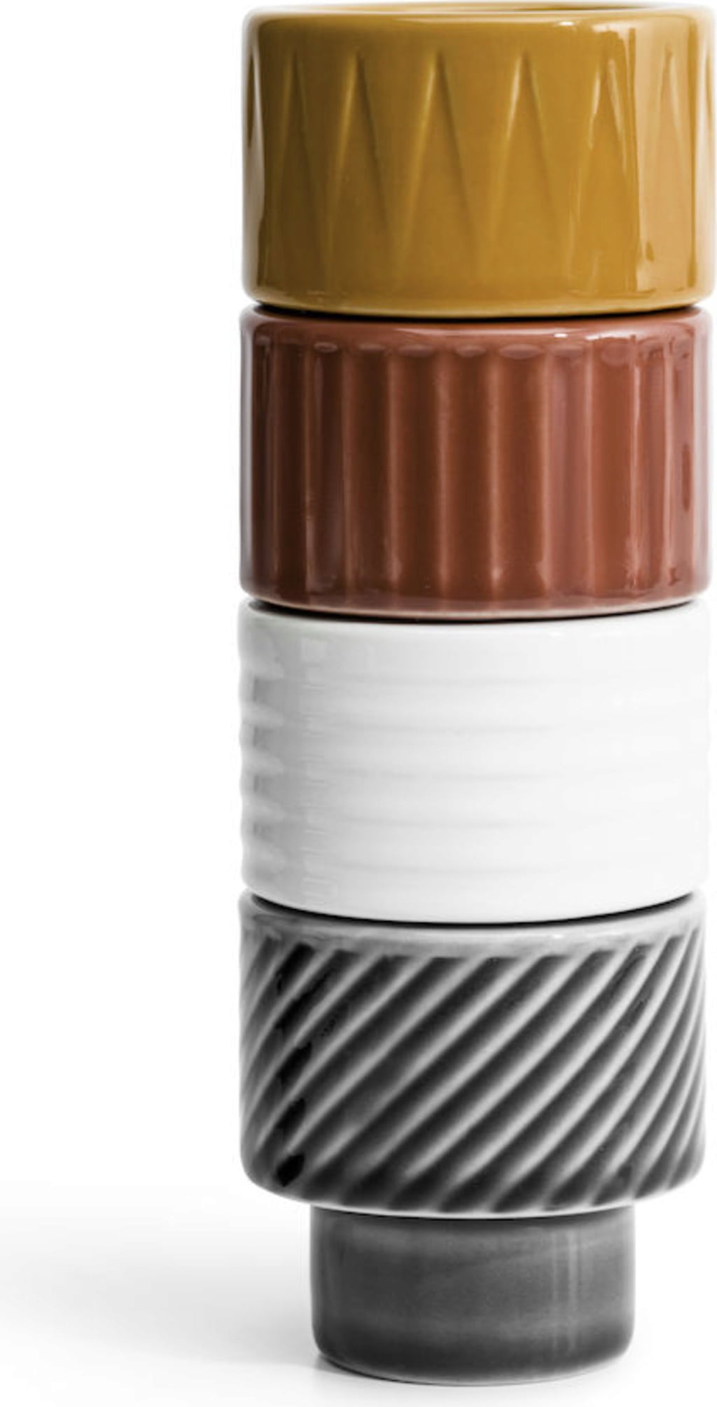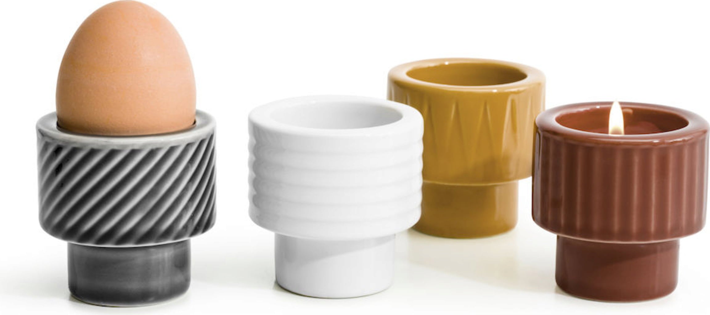 Ezek a tojás- és mécsestartók nagyszerű dombor mintáikkal és gyönyörű színeikkel különleges látványt nyújtanak a reggelizőasztalokon. Különleges kialakításuknak köszönhetően egyedi akcentust jelenítenek meg a 70-es évek frissen értelmezett stílusában.