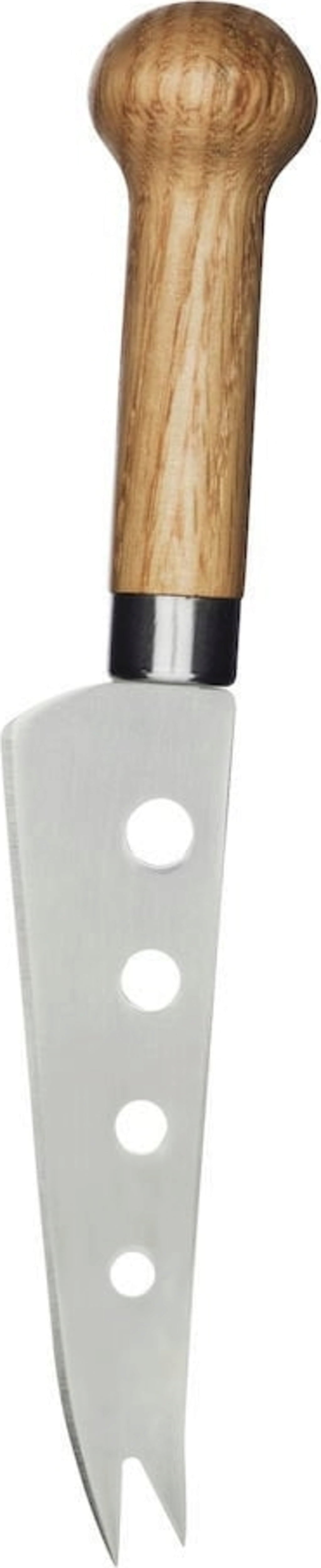A lyukakkal ellátott sajtkés különösen a lágy sajtok szeletelésére alkalmas. Rozsdamentes acél pengével és tölgyfa markolattal.