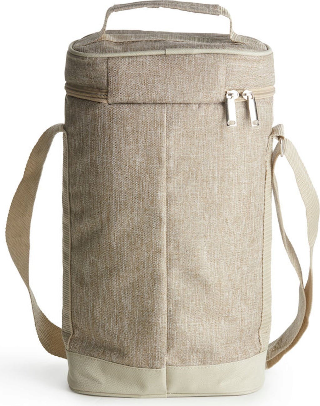 Ez a mutatós lenvászon megjelenésű táska különösen stílusos módja a bor szállításának. A táska két üveg bor, vagy 1,5 liter műanyag palack tárolására alkalmas. Kirándulások, vagy piknik nélkülözhetetlen társa.