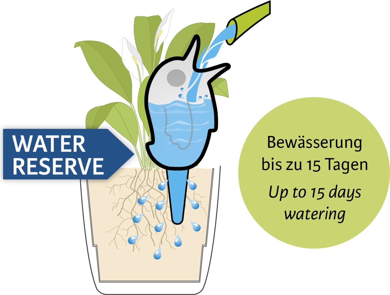 Ez a műanyagból készült aranyos madárka több, mint egy szép dekoráció. Egyszerűen szúrja a földbe vízzel megtöltve, és megbízhatóan el fogja látni zöld kedvenceit vízzel. Legyen szó az erkélyről, a teraszról, a kertről vagy akár a nappaliról – a Bördy mindenhol megállja a helyét, és gondoskodik arról, hogy növényei mindig elegendő vizet kapjanak.