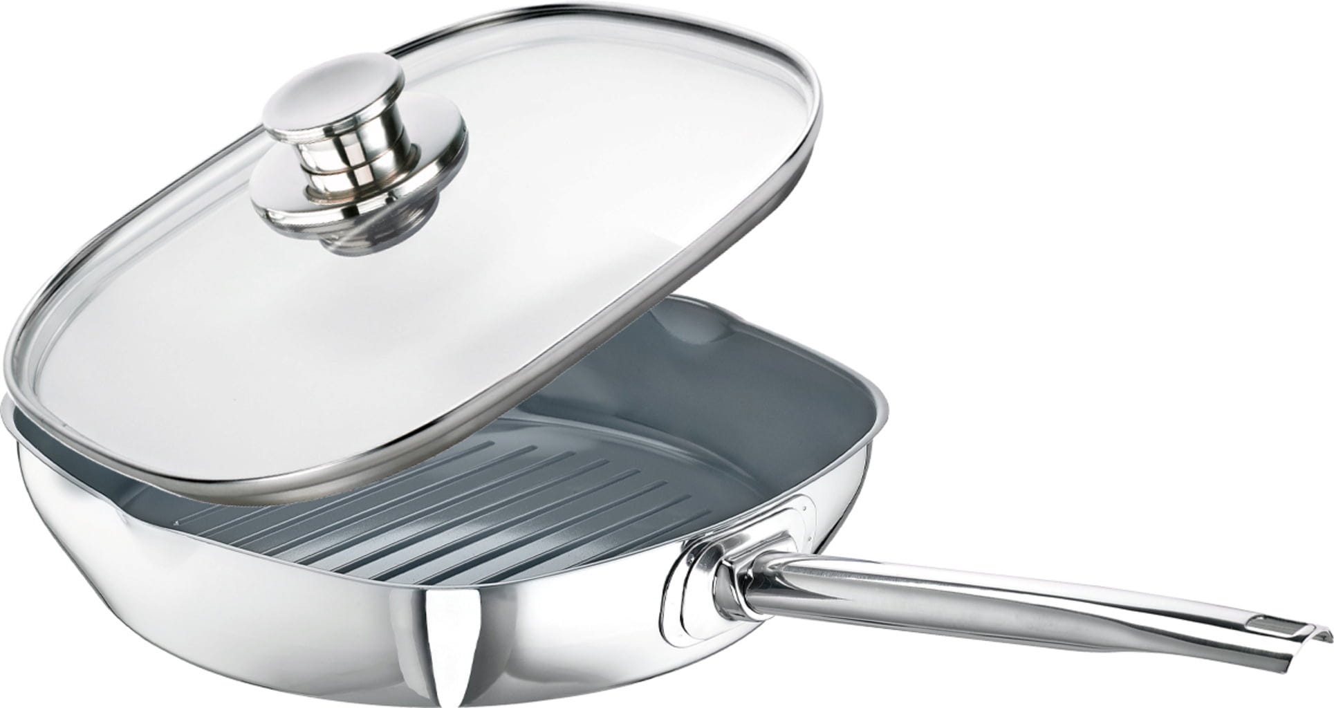 A Schulte-Ufer konyhaedény-specialista fenntartható módon gyártott Green-Life sorozatából származó, fedővel ellátott rozsdamentes acél grillserpenyő ideális választás a zsírszegény, ropogós és egészséges sütéshez. Nemcsak kiváló anyag- és megmunkálási minőségével nyűgöz le, hanem kiváló grillezési eredményeivel és kényelmes kezelhetőségével is.