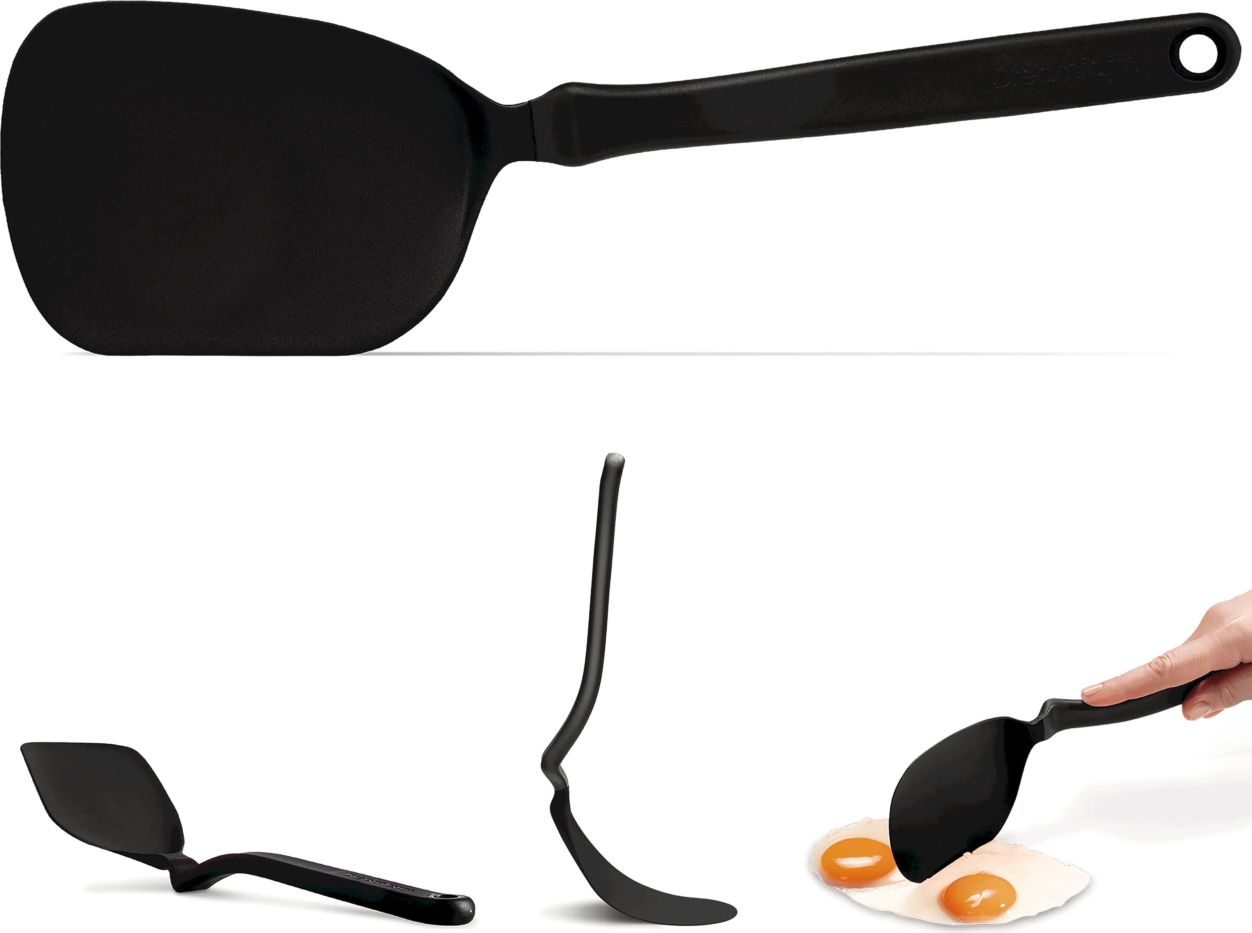 A Dreamfarm Chopula spatula egy ötletes fordítólapát, amely rugalmas, nagy fejének köszönhetően erőfeszítés nélkül becsúszik minden étel alá. Egyedülálló kialakítása lehetővé teszi, hogy a serpenyők és tálak minden sarkát precízen elérje. A nyélben található speciális törésnek köszönhetően a fej lerakáskor mindig megemelve marad a munkafelülettől, ami maximális tisztaságot biztosít a konyhában.