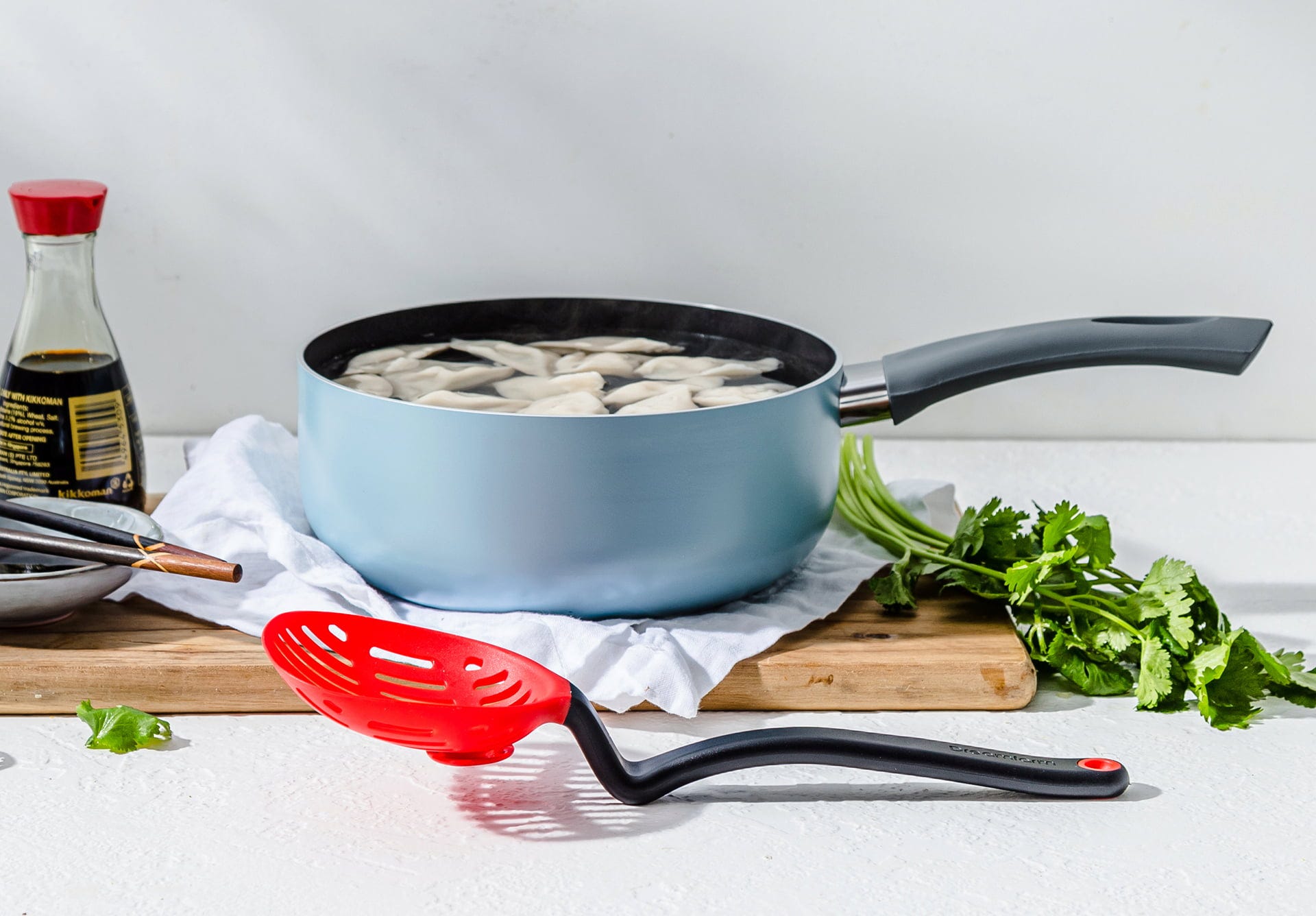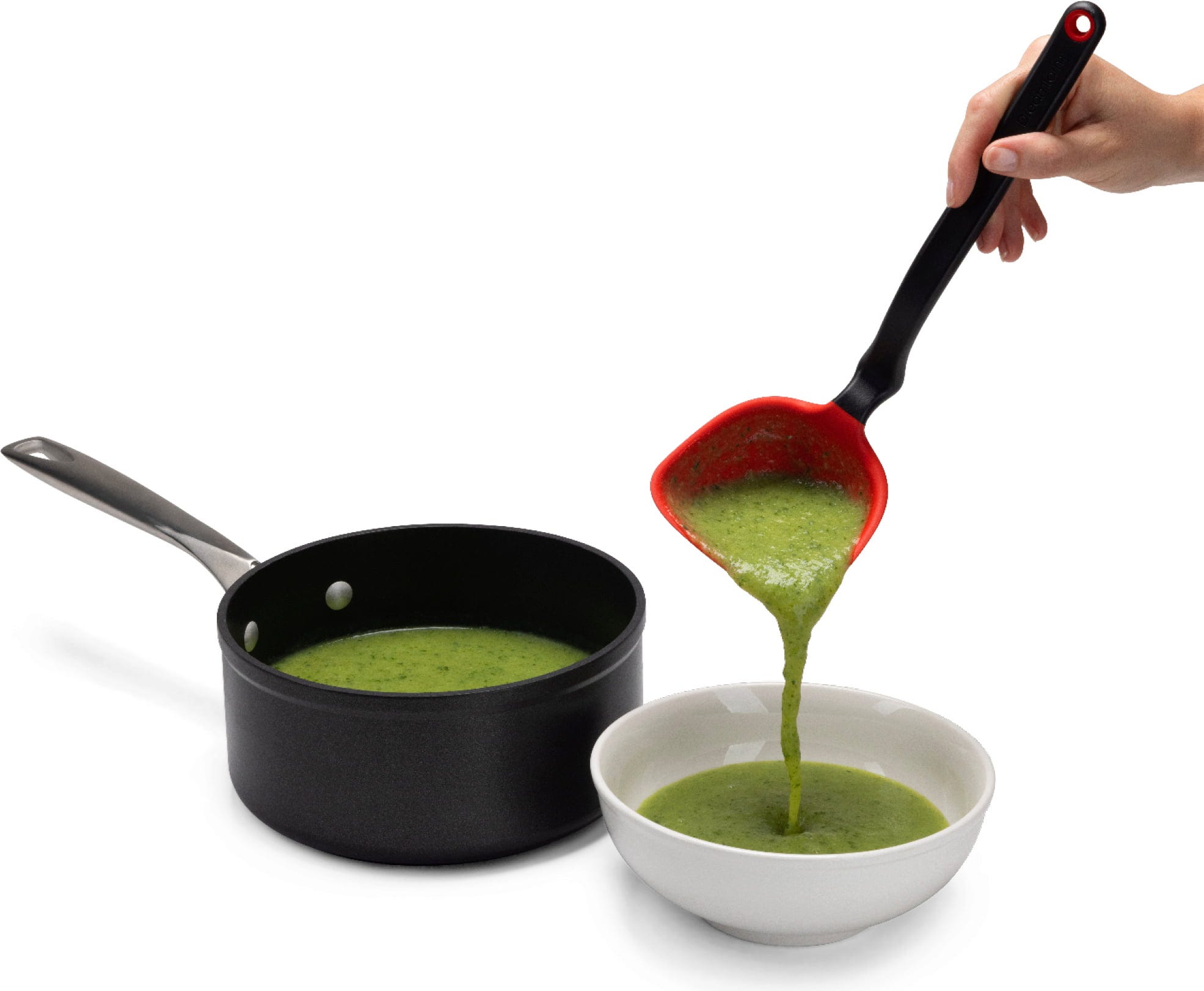 Felejtse el a fiókokat eltorlaszoló, ormótlan merőkanalakat, mert a Fladle egy gombnyomásra teljesen ellaposodik, így bármilyen rekeszben elfér! Ez az okos eszköz valódi multitehetség: a mozgatható, összehajtható merőfej rugalmasan használható, szilikonperemével pedig a szószokat és leveseket maradéktalanul kikaparhatja az edények minden sarkából anélkül, hogy megsértené az érzékeny tapadásmentes bevonatokat.