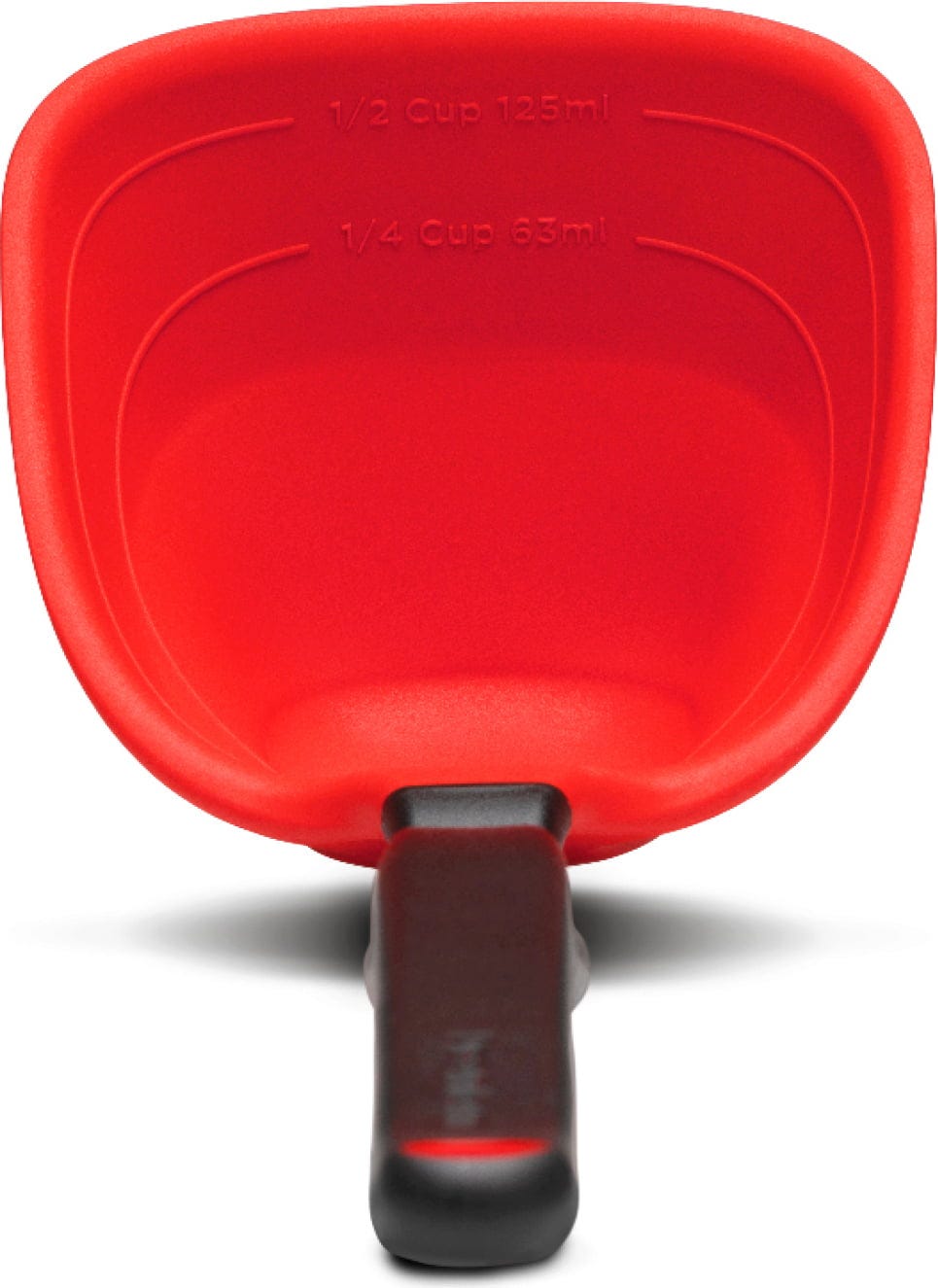 Felejtse el a fiókokat eltorlaszoló, ormótlan merőkanalakat, mert a Fladle egy gombnyomásra teljesen ellaposodik, így bármilyen rekeszben elfér! Ez az okos eszköz valódi multitehetség: a mozgatható, összehajtható merőfej rugalmasan használható, szilikonperemével pedig a szószokat és leveseket maradéktalanul kikaparhatja az edények minden sarkából anélkül, hogy megsértené az érzékeny tapadásmentes bevonatokat.