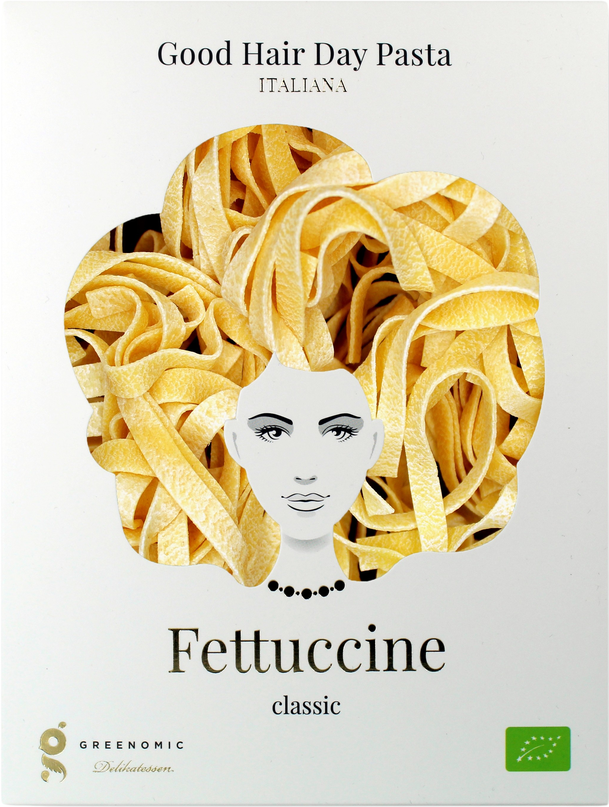A "Good Hair Day tészta" csak két bio összetevőből áll: durumbúza búzadara és tojás. Nem kell több ahhoz, hogy finom fettuccine-t készítsen, hagyományos bronz eljárással. Miután a tésztát átpréselték a speciális bronzlemezeken, durva felületet és sűrű struktúrát adva, a szószok különösen jól tapadnak a fettuccine-hoz.
