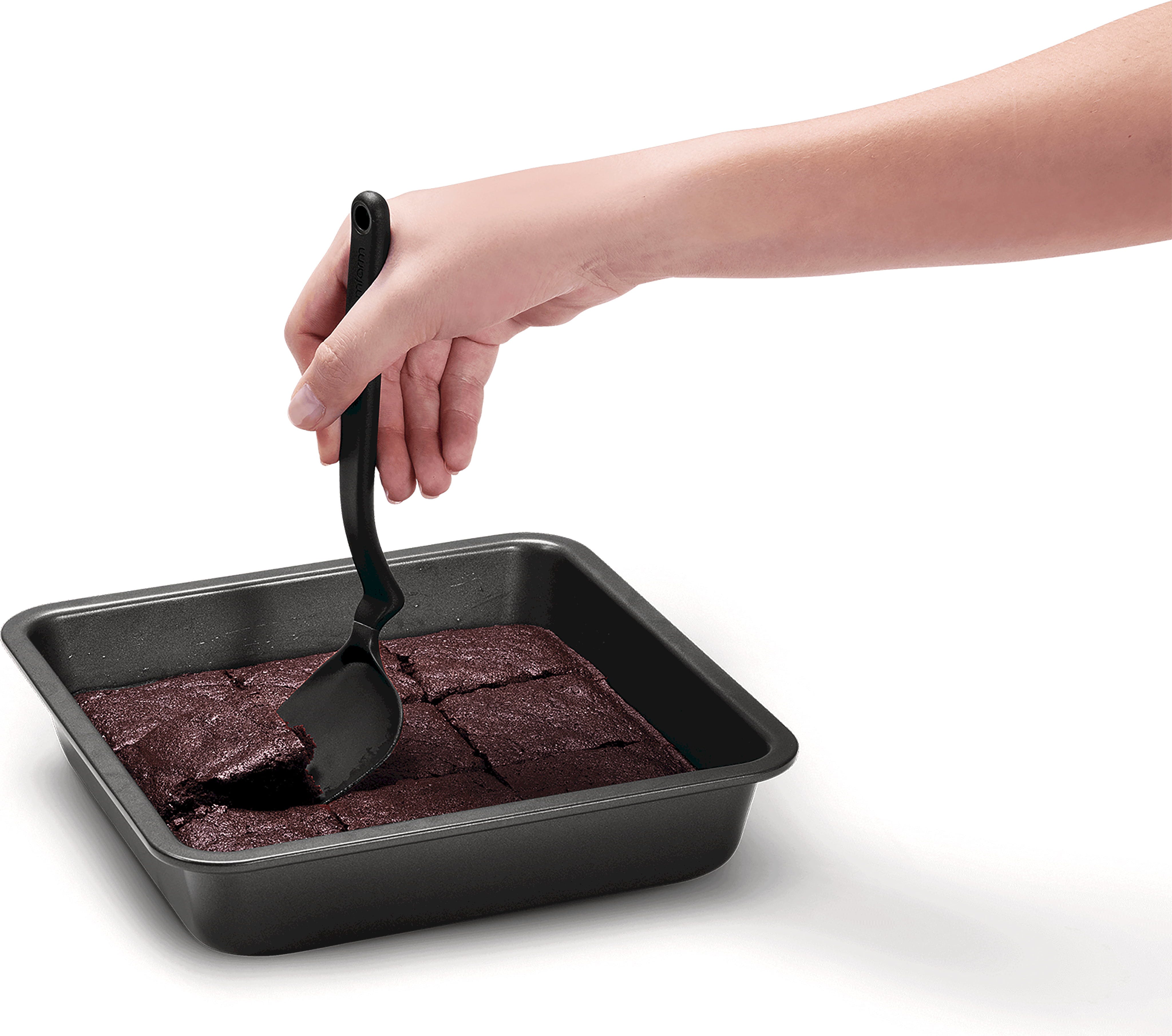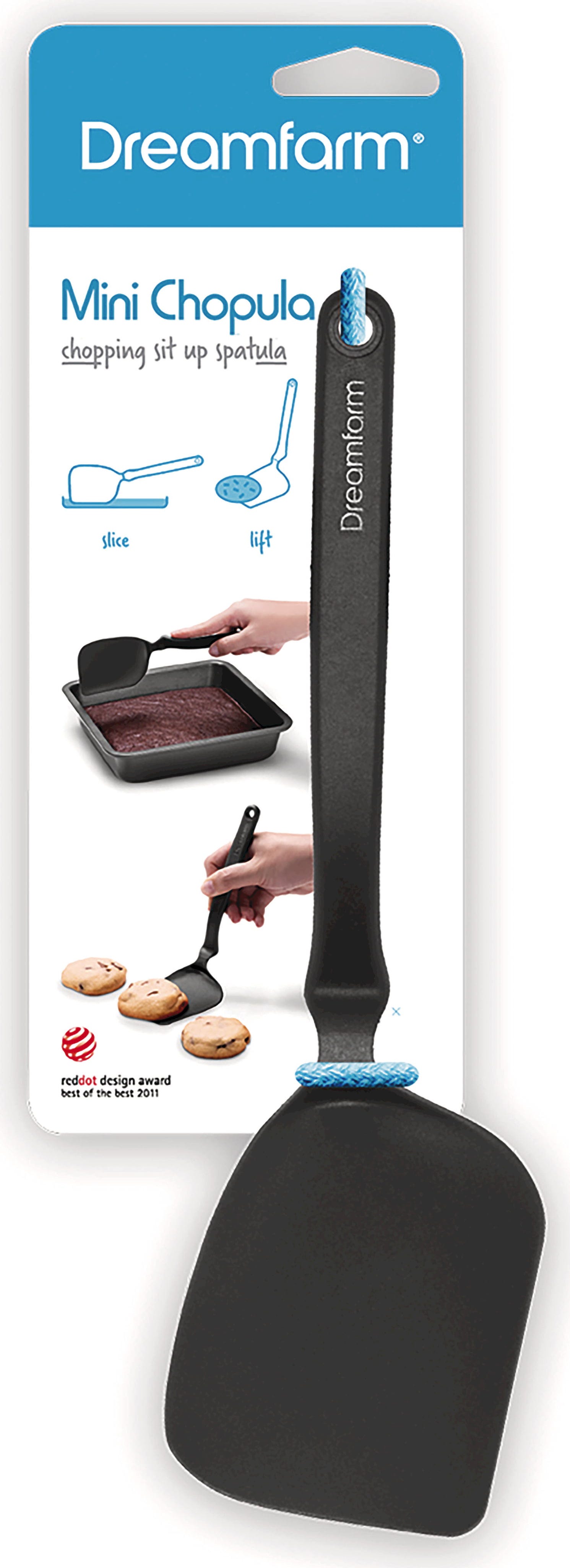 A Dreamfarm Mini Chopula a tökéletes segítőtárs az olyan finom feladatokhoz, mint a kekszek, tojások vagy brownie-k megfordítása. A hajlított nyélnek és a több helyen meghajlított fejnek köszönhetően erőfeszítés nélkül elérhet minden sarkot a serpenyőkben vagy a tepsikben. Az innovatív „Sit-Up” design távol tartja a fejet a munkafelülettől, így az mindig tiszta marad.