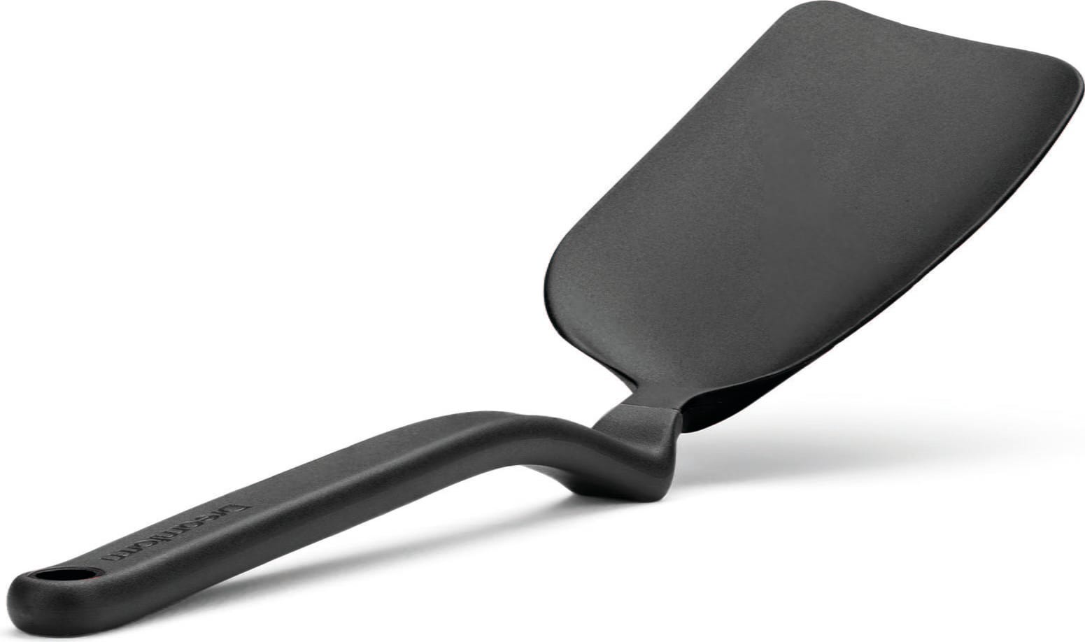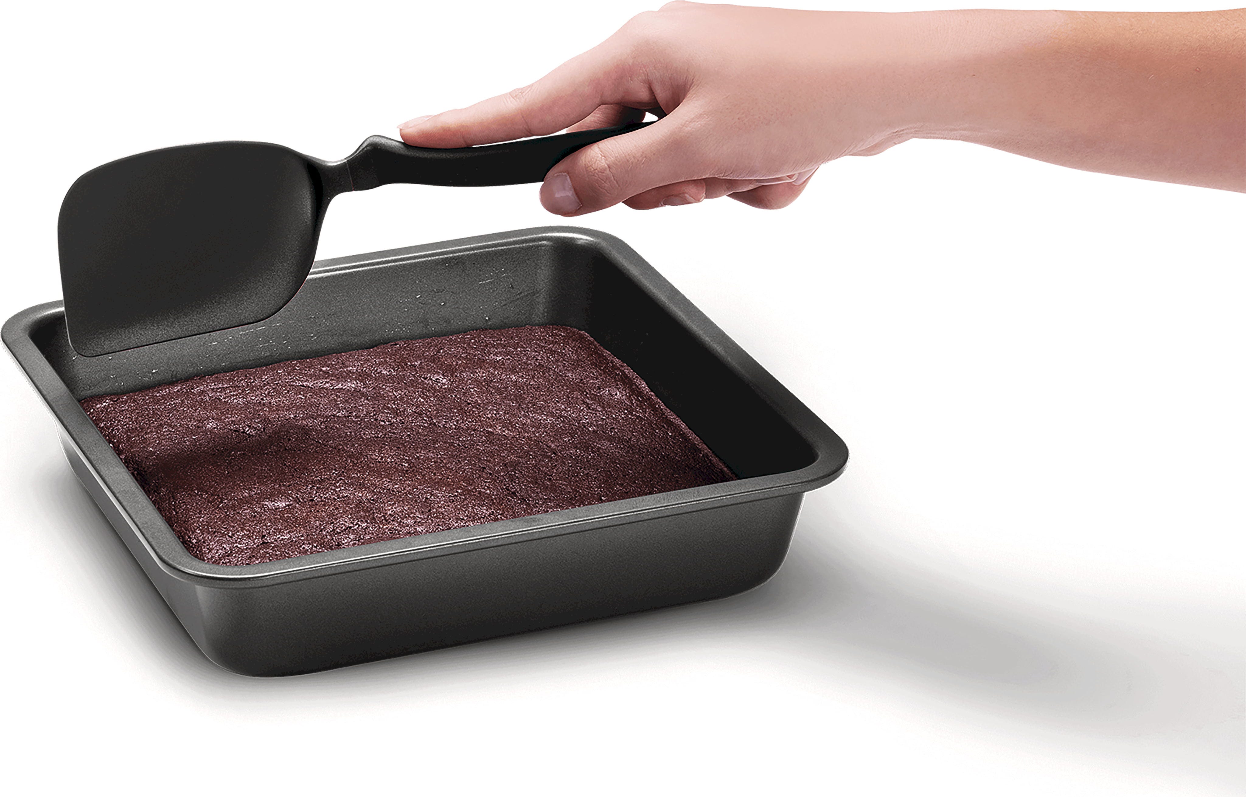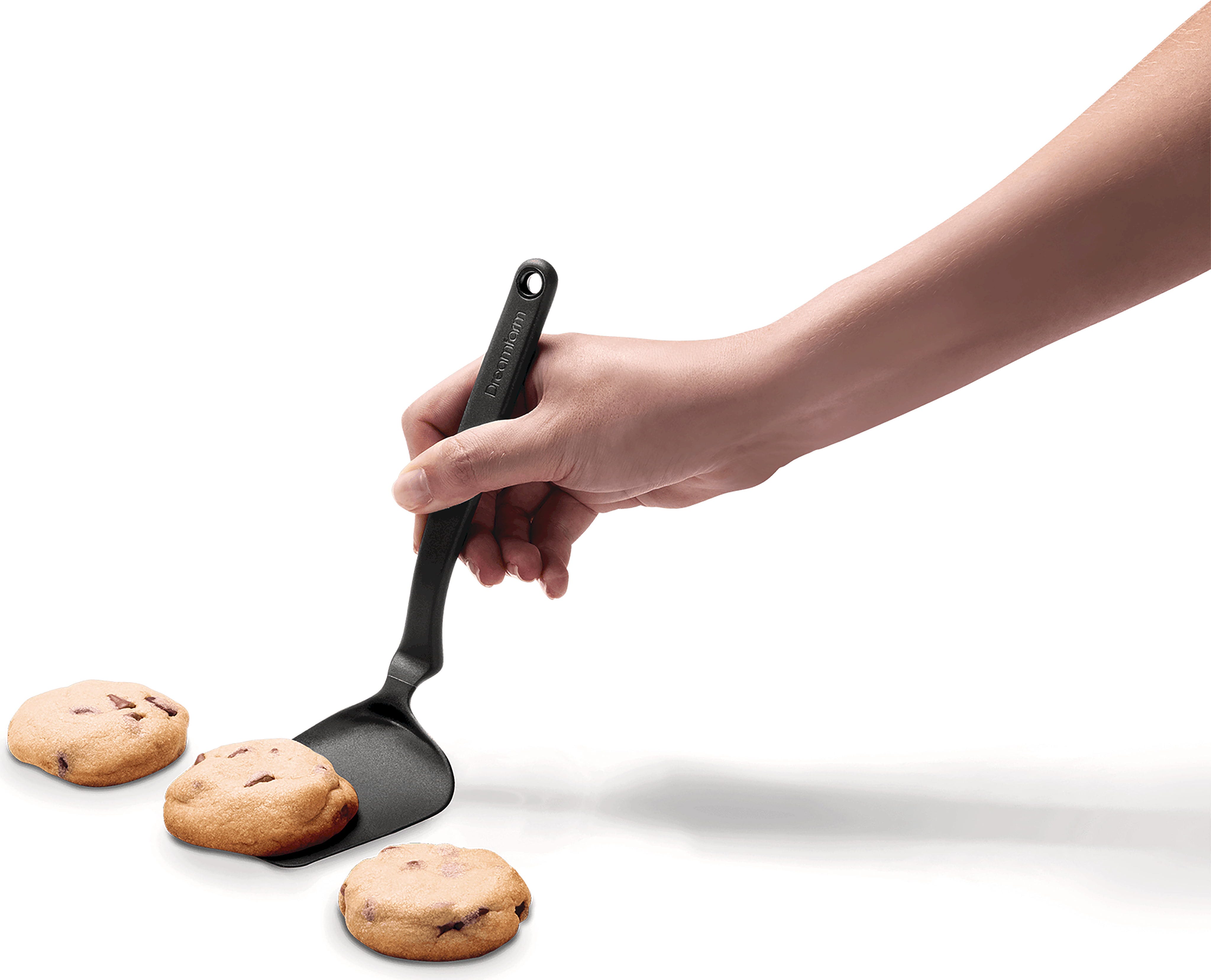 A tapadásmentes bevonattal ellátott, tartós nejlon fej 250°C-ig hőálló, és kíméli az érzékeny felületeket anélkül, hogy megkarcolná azokat. Sütés vagy főzés után ez a díjnyertes konyhai segédeszköz egészen egyszerűen, mosogatógépben tisztítható.