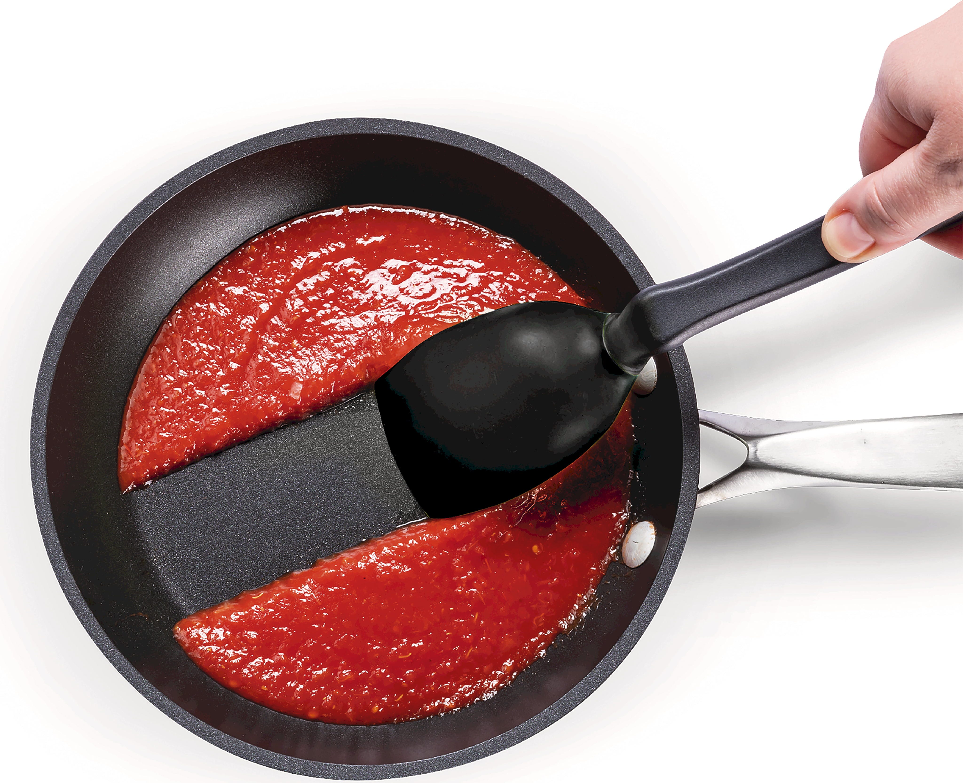 A Dreamfarm Supoon kanállal egy valódi multitehetséget szerezhet be a tűzhely mellé, amely egyetlen eszközben egyesíti a keverést, a merítést, a mérést és a kikaparást. Rugalmas szilikonfejének köszönhetően erőfeszítés nélkül elérheti a fazekak és serpenyők minden sarkát, hogy a maradékokat teljesen kikaparja, miközben az anyag megbízhatóan kíméli az Ön edényeit.