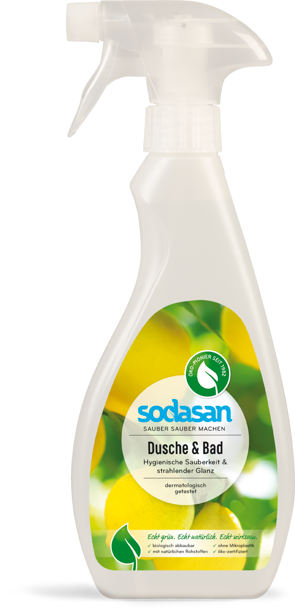 A Sodasan ökológiai Fürdőszoba és zuhany tisztítója kizárólag növényi tenzideket és tiszta illóolajokat tartalmaz.